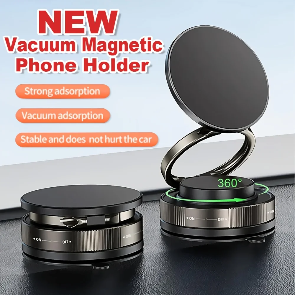 Car Magnetic Vacuum Adsorption Bracket 360 Rotating Double Side Suction Cup Zinc Alloy Mobile Phone Holder For Iphone