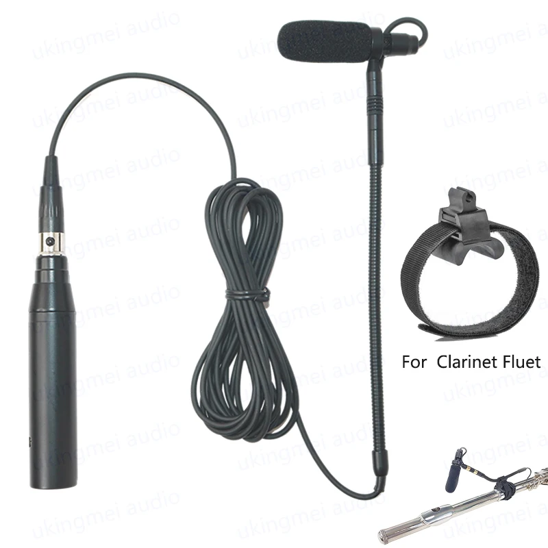 Clip-On Musical Instrument Microphone for Piano Guitar Saxophone Violin Cello Phantom Power Input Flexible Gooseneck Microphone