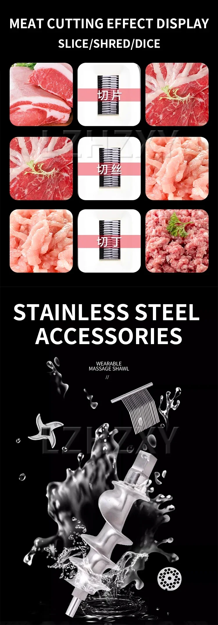 Commercial Meat Grinder High Power Stainless Steel Dual-purpose Multi-function Fully Automatic Desktop Strong Slicer Sausage