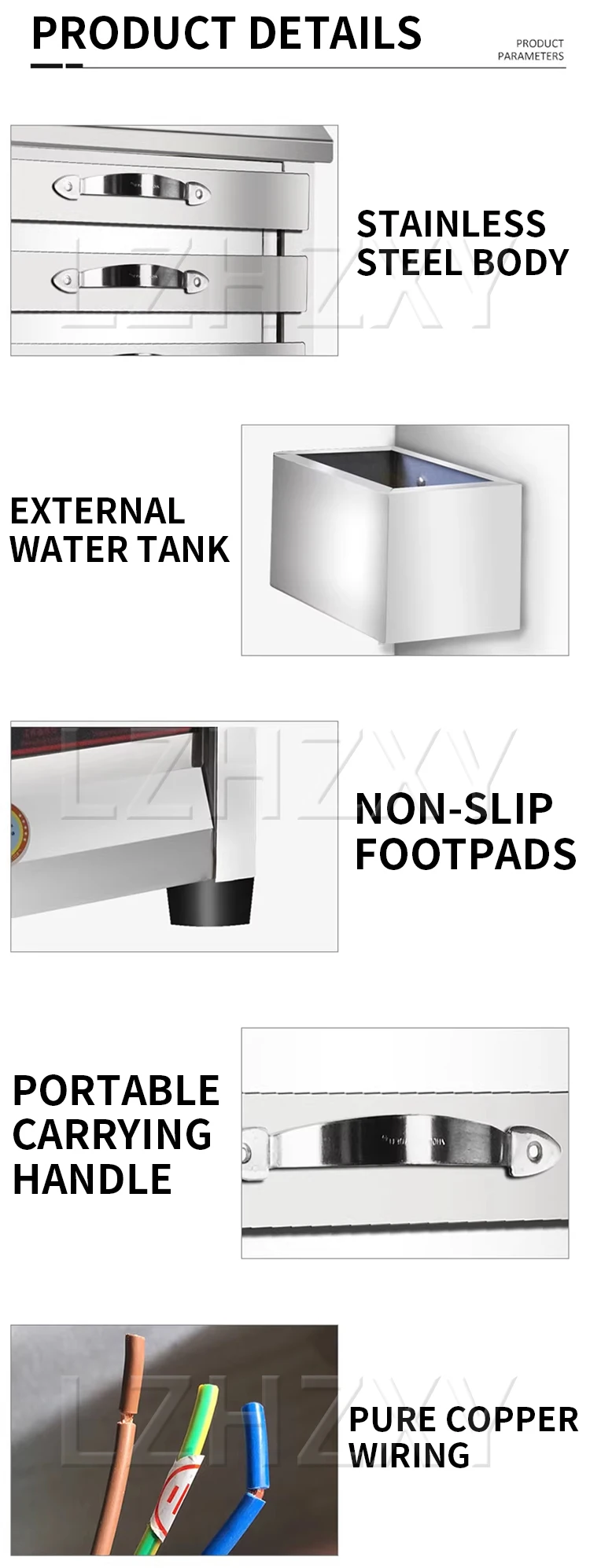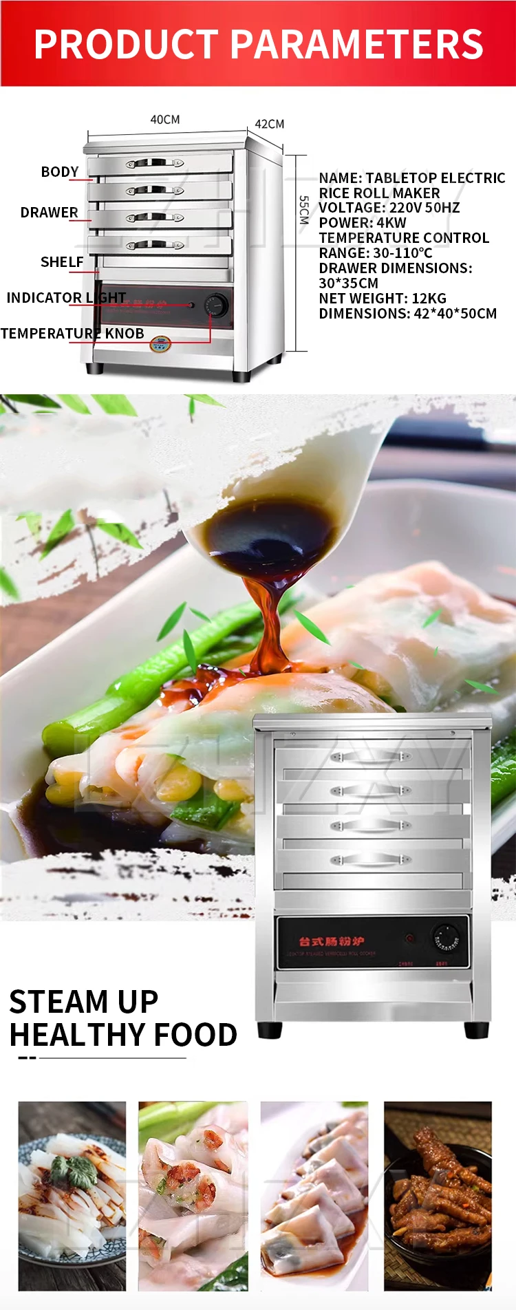 Commercial Steam Rice Roll Maker Side-Mounted Water Tank / Built-in Water Tank 4KW High-Power Electric Steamer Stainless Steel Rice Roll Steamer