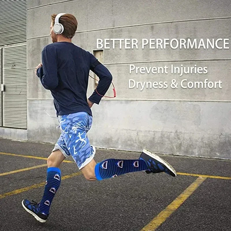 Compression Socks 20-30mmhg Striped Animal Long Tube Socks Varicose Veins Anti Fatigue Men Women Outdoor Rugby Bike Sports Socks