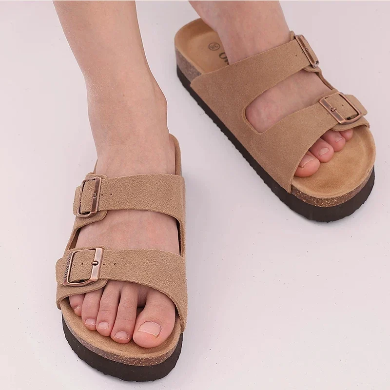 Comwarm Classic Cork Sandals For Women Men Fashion Soft Thick Sole Cork Slippers Summer Beach Sandals Home Open Toe Flat Sandals