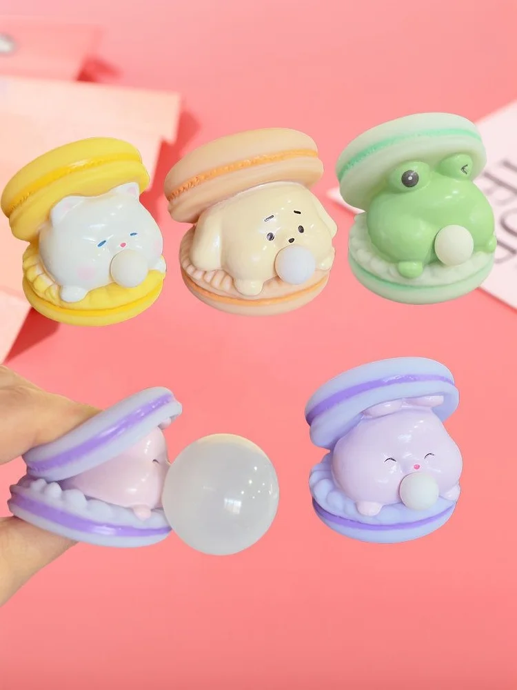 Package Included: Random Color 2Pcs Macaron Burger Blows Bubbles Stress Relief Toys