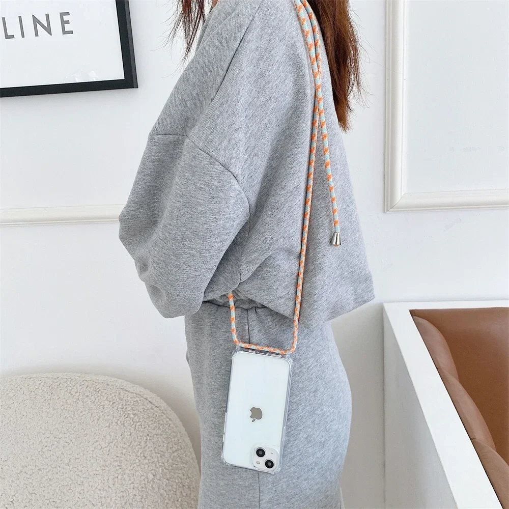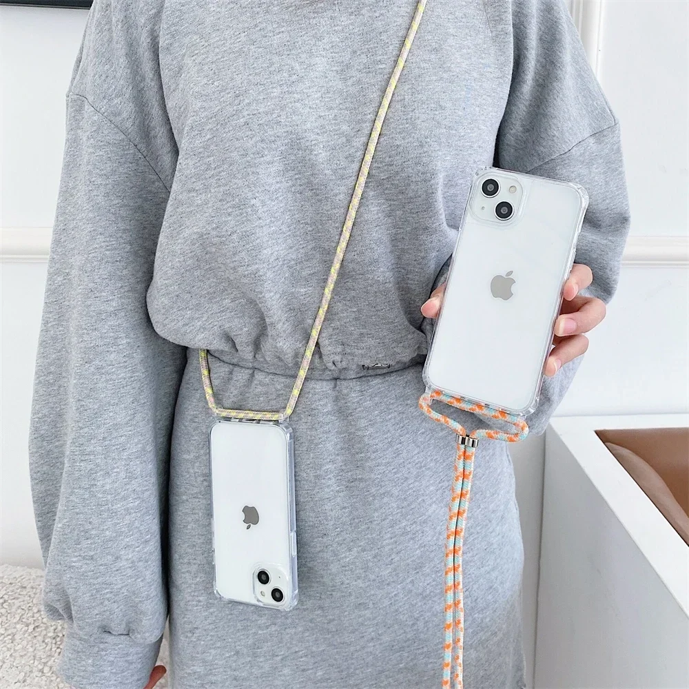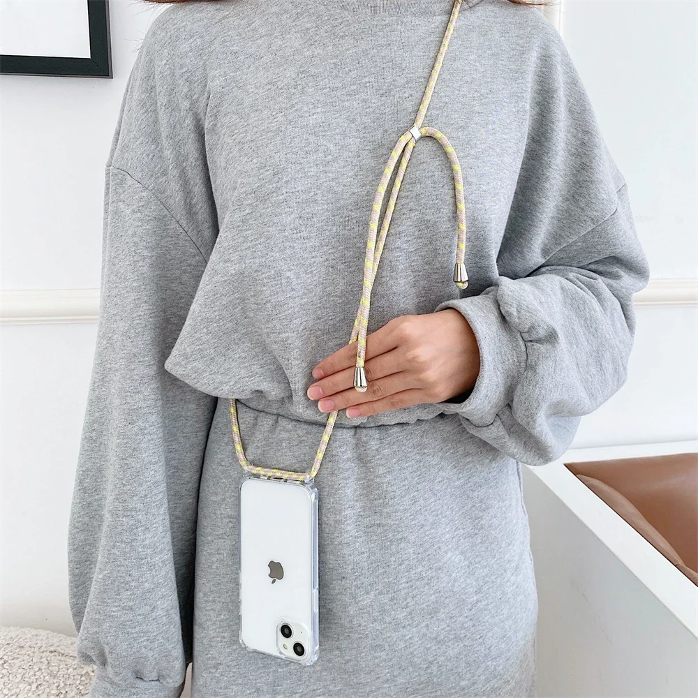 Crossbody Necklace Cord Lanyard Case For iPhone 17 16 15 13 Pro Max 12 Mini 11 14 Plus Strap Hang Rope Transparent Phone Cover