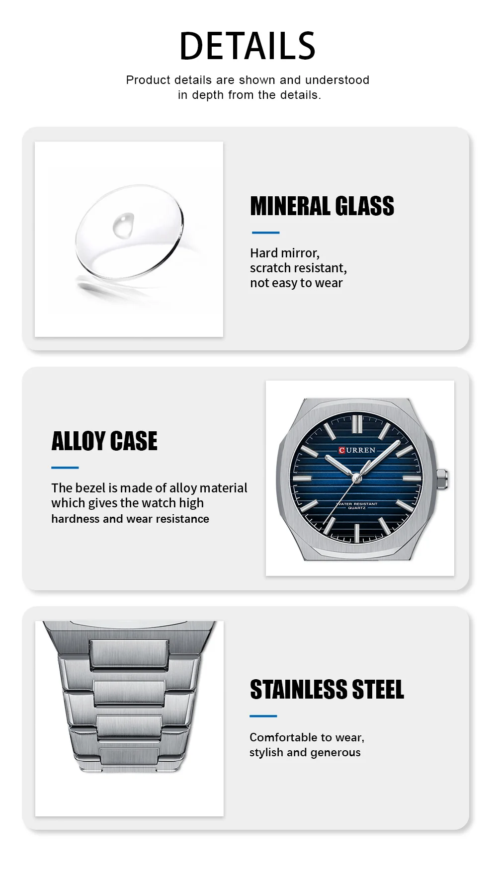 CURREN NEW Luxury Business Design Luminous Men’s Watches Simple Quartz Stainless Steel Strap Clock Waterproof Male Wristwatch