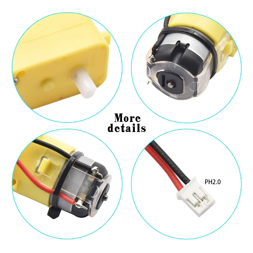 4PCS DC3-6V TT Motor With Cable+PH2.0 Connector Gear Motor Dual Shaft 200RPM Gear Motor for Arduino Robot Car DIY Electronic