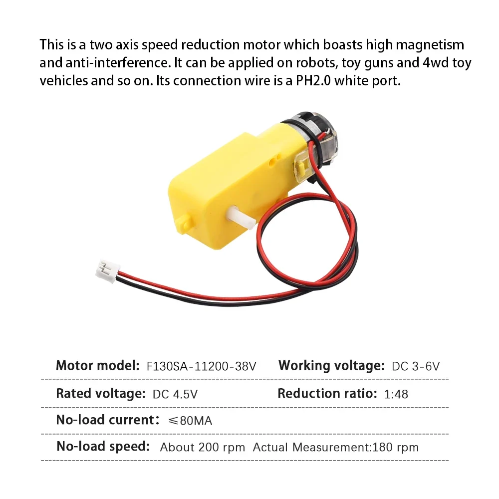 DC3-6V TT Motor Gear Motor With Cable+PH2.0 Connector Dual Shaft 200RPM Gear Motor for Arduino Robot Car DIY Electronic
