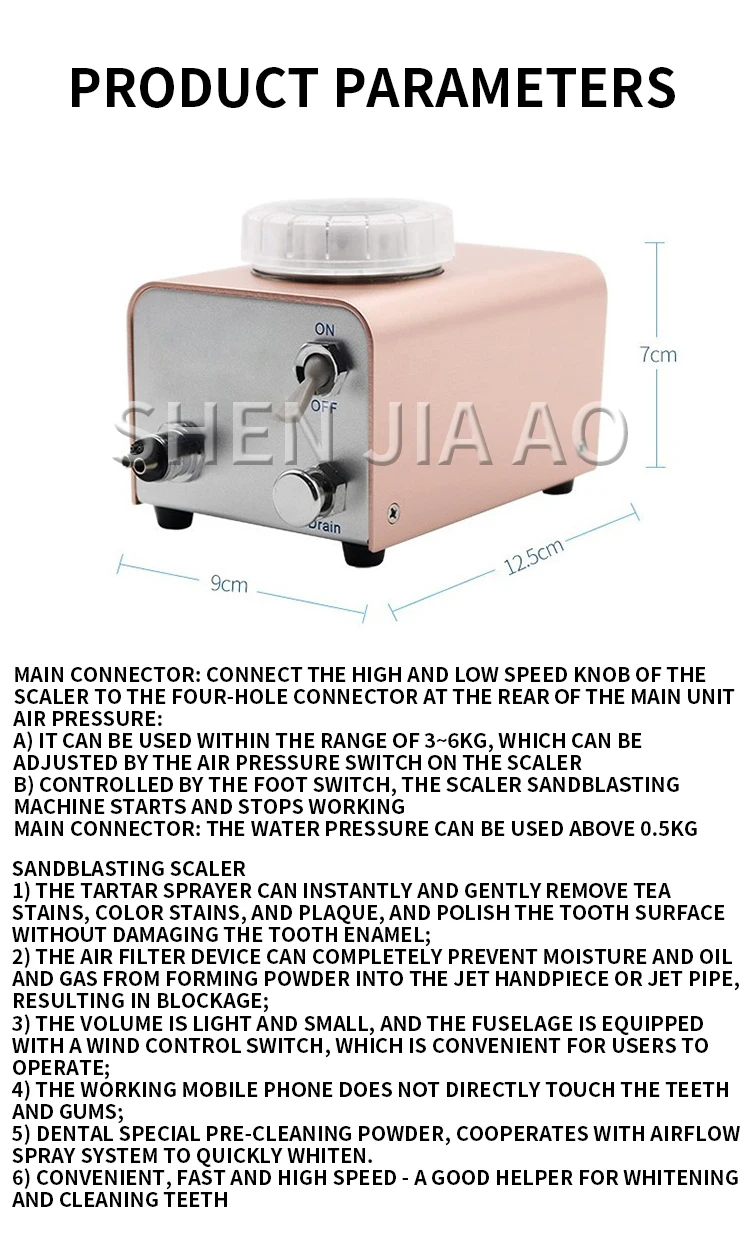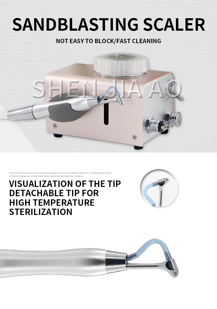1) The tartar sprayer can instantly and gently remove tea stains, color stains, and plaque, and polish the tooth surface without damaging the tooth enamel;