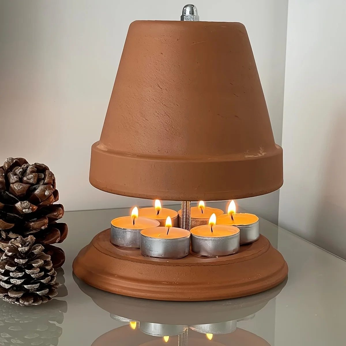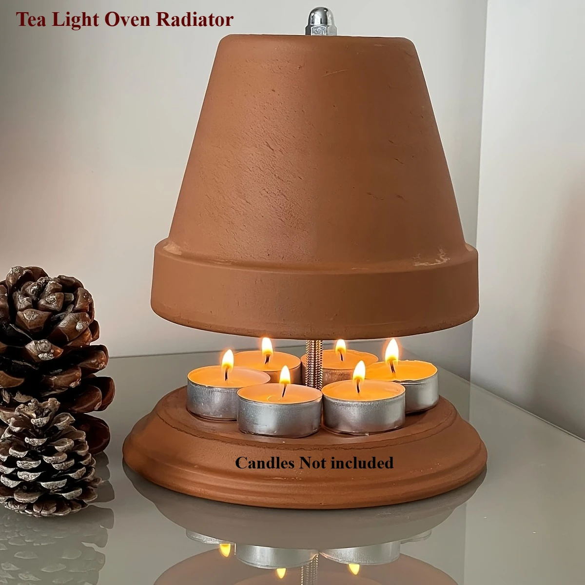 Double-Walled Tea Light Oven Radiator – Terracotta Candle Heater, Compatible with Tea Lights, for Living Room, Dining, Office