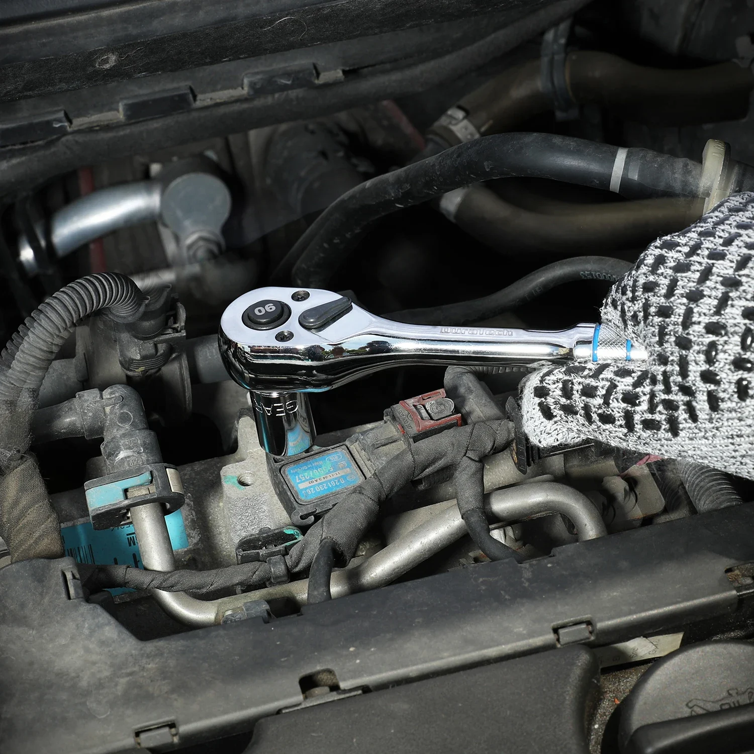 • With just 4 degrees of space needed for each turn, it not only gets the job done faster but it’s essential for working in narrow spots. Precision engineered high strength pawl for increased durability. Pressing the release button on the socket is easy to remove and even makes one-handed socket changes possible