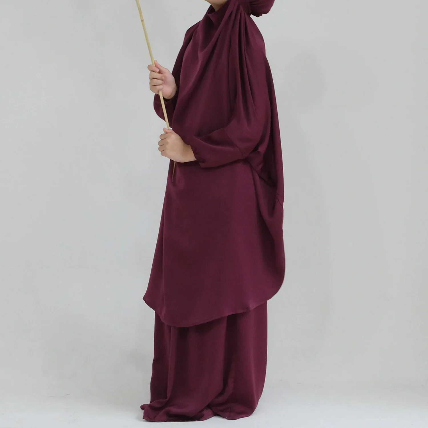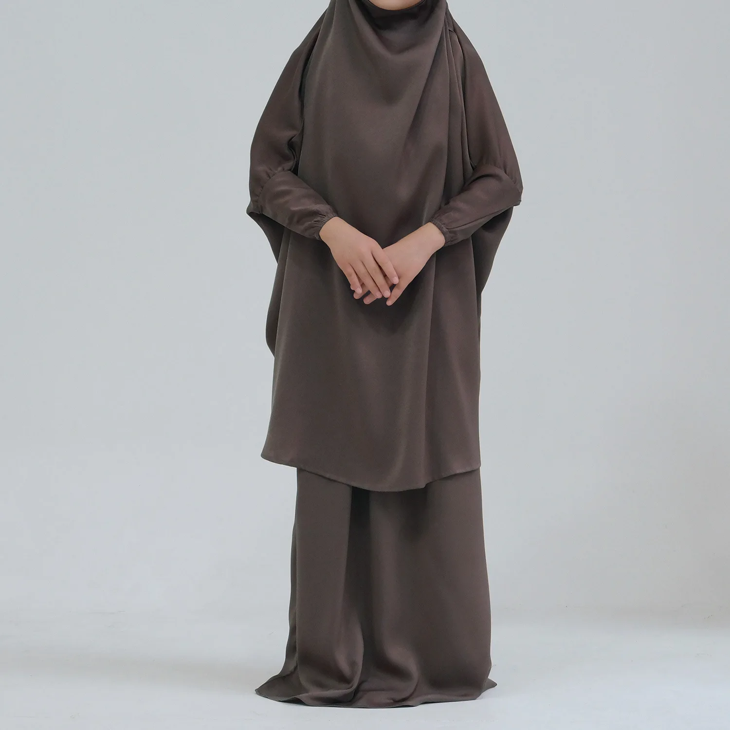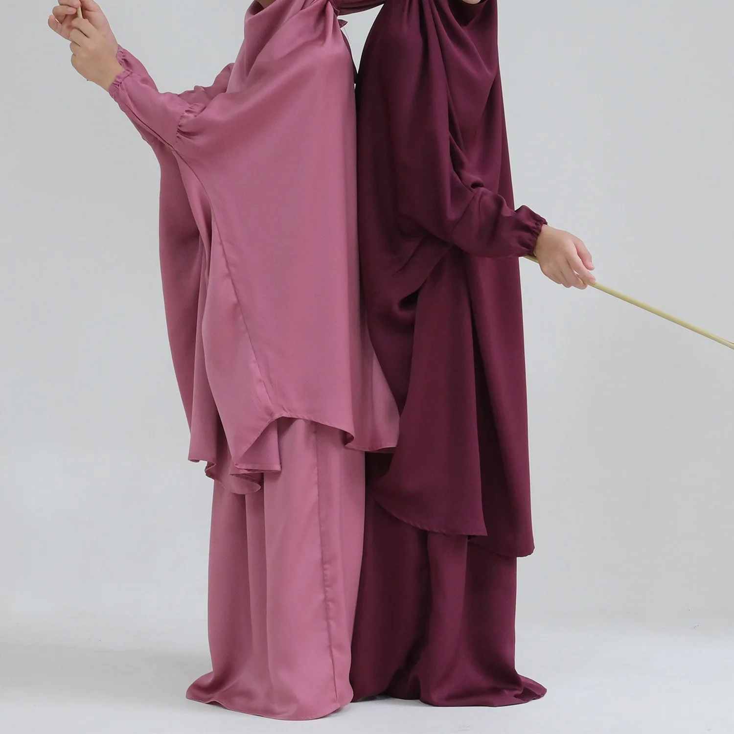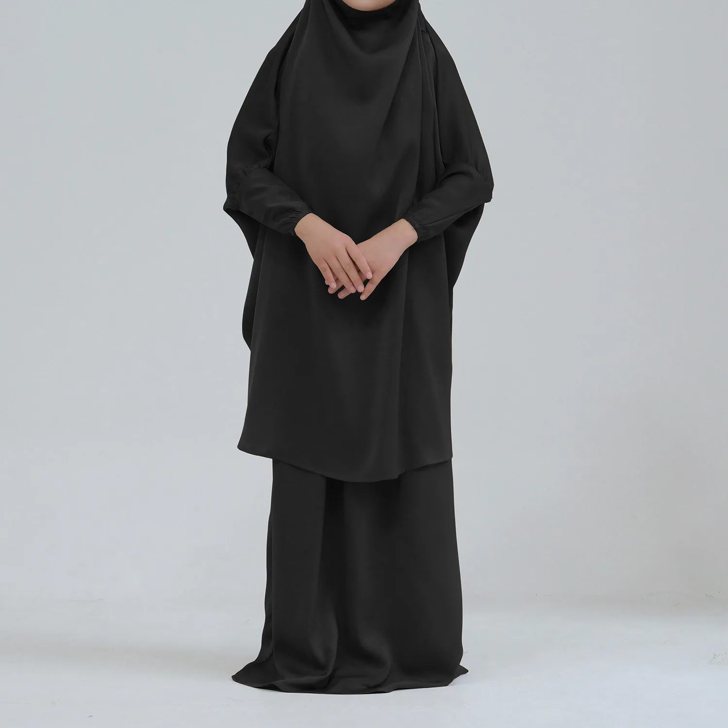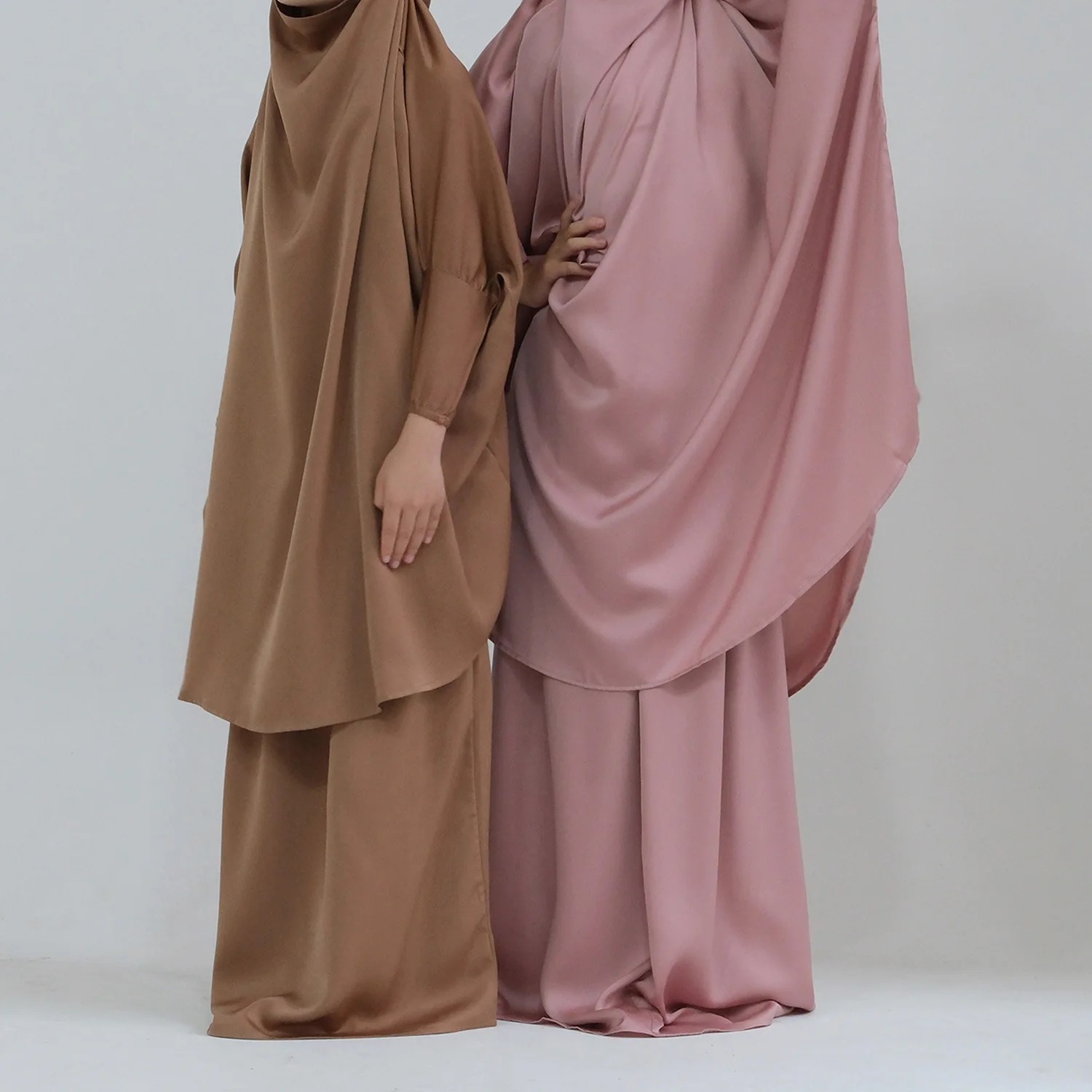 Eid Muslim Long Khimar Dress Kids Girls Abaya Long Khimar Set Prayer Garment Ramadan Dresses 2 Piece Jubha Robe Caftan Jilbab