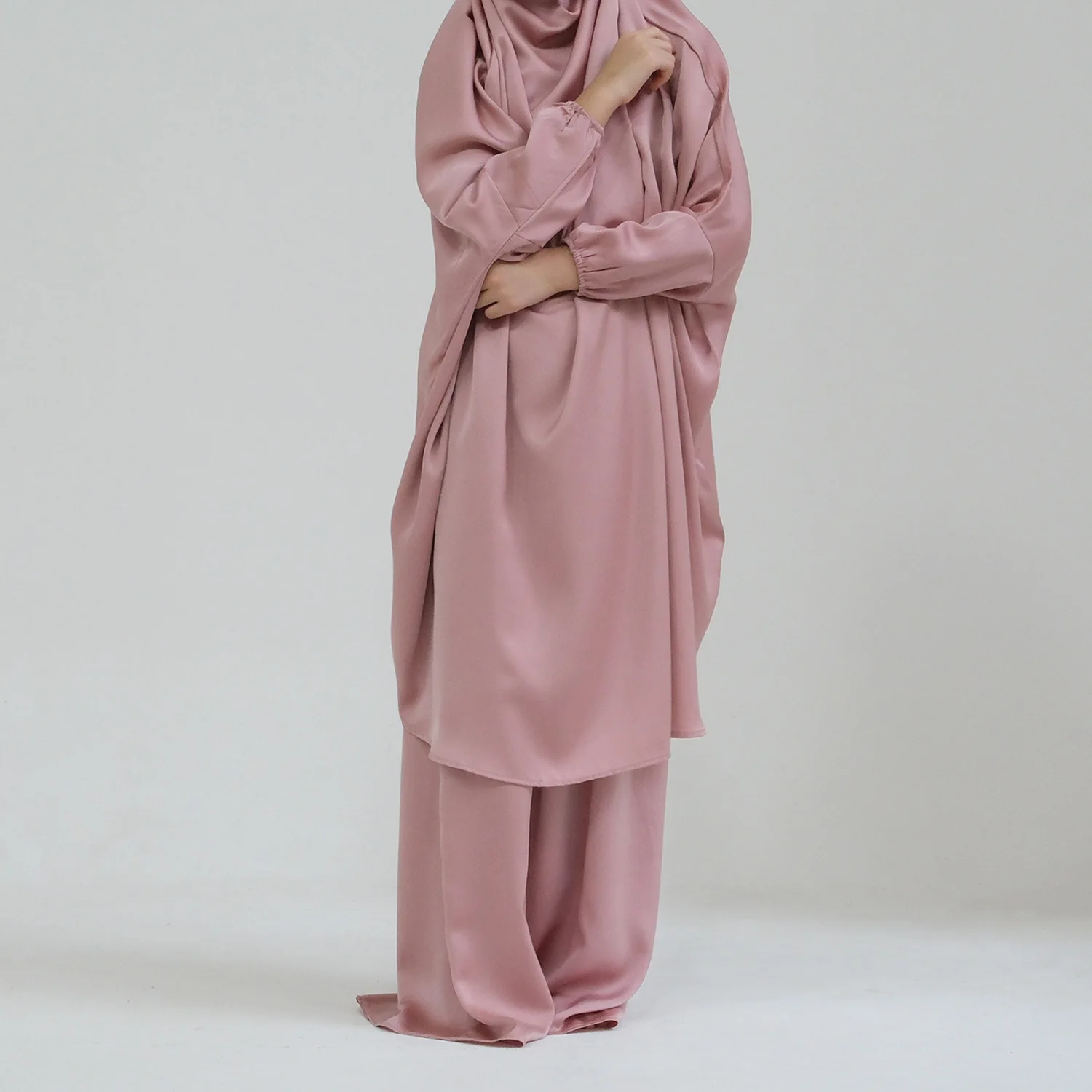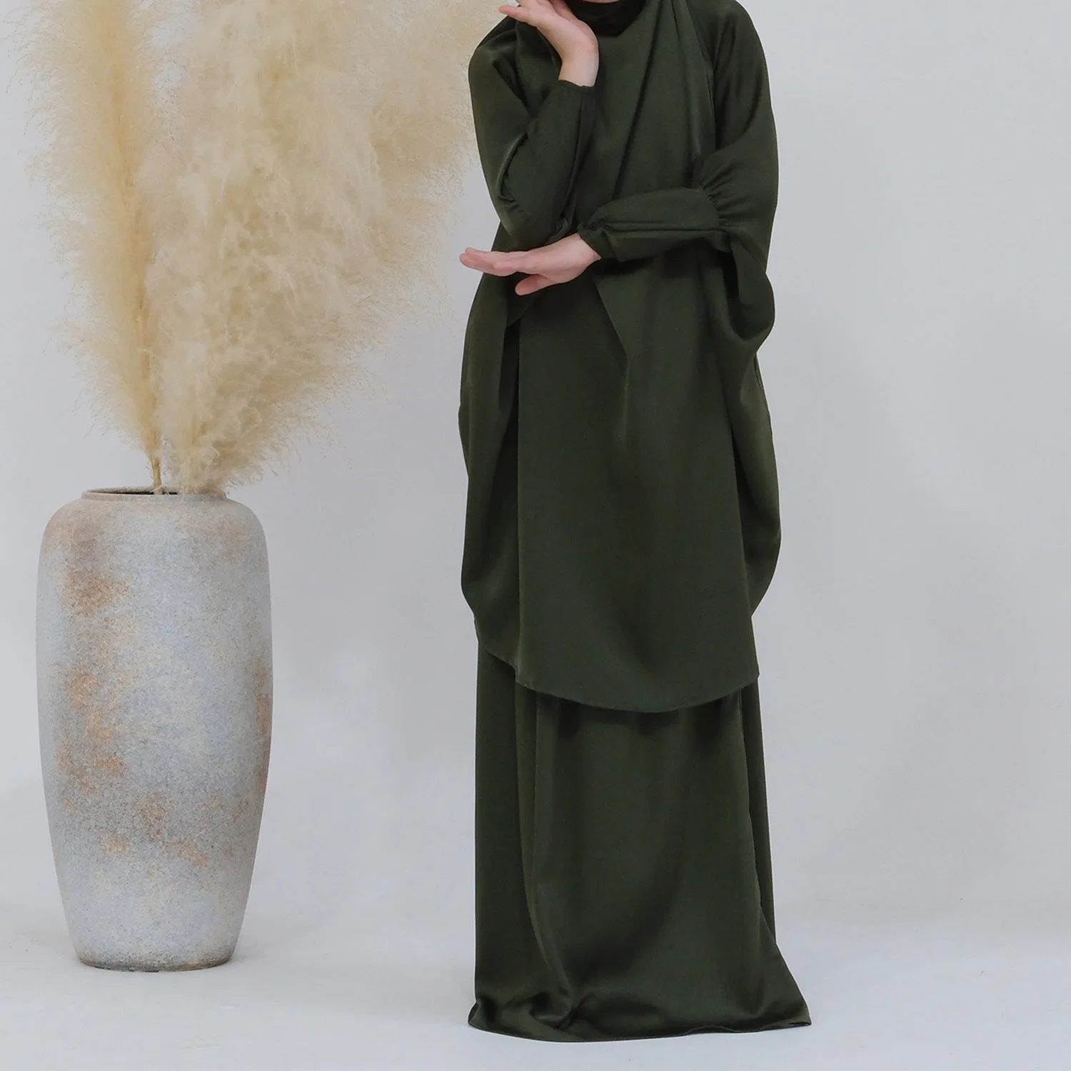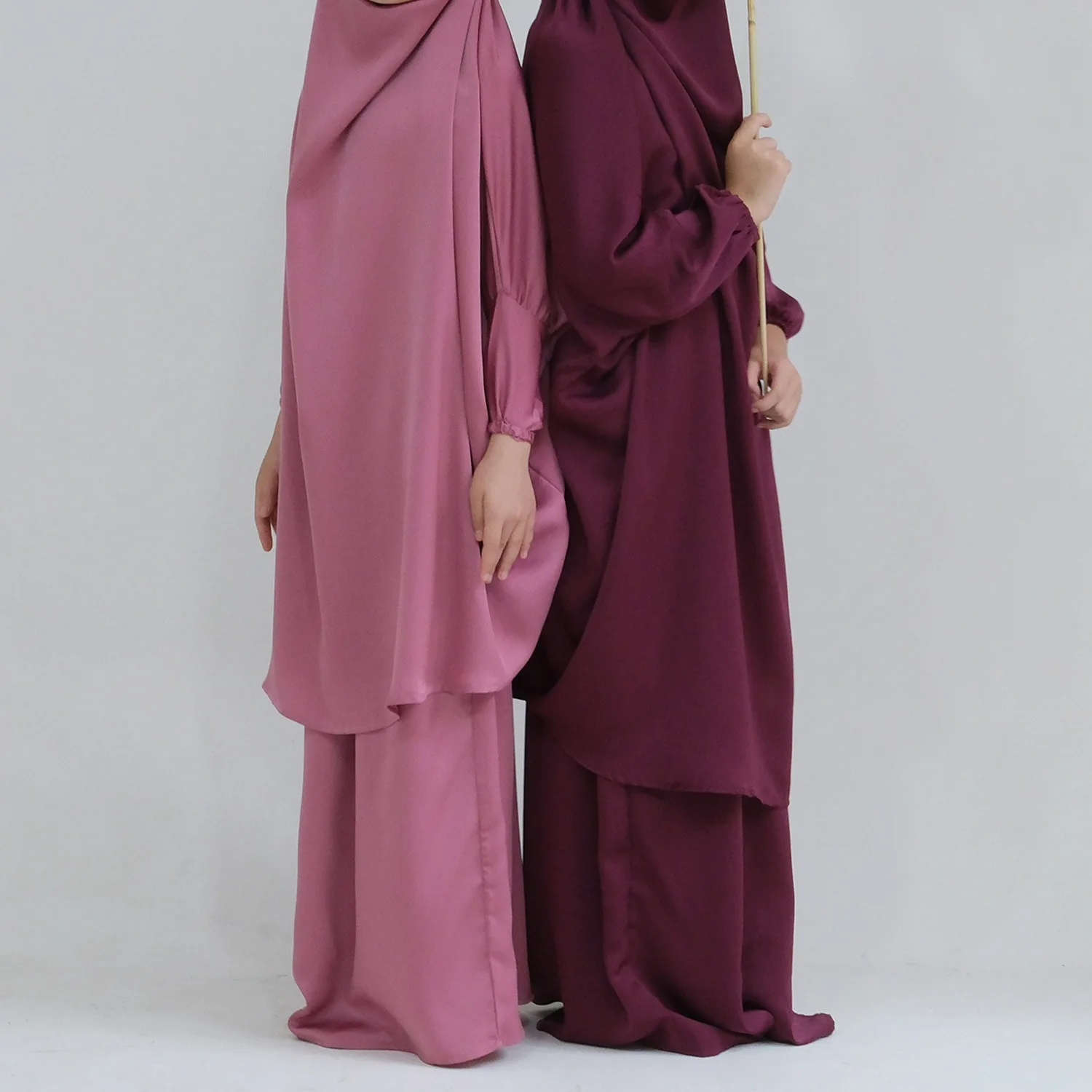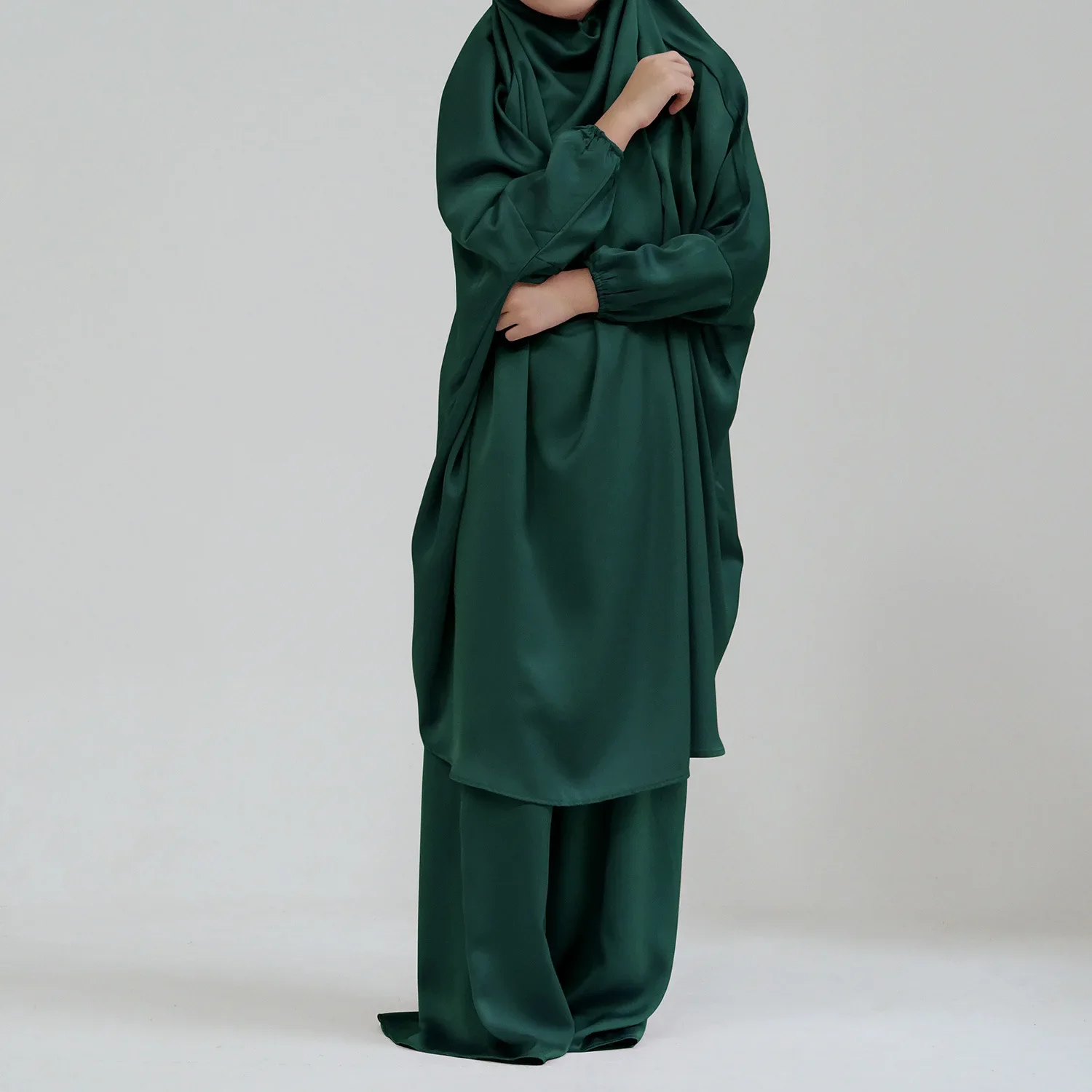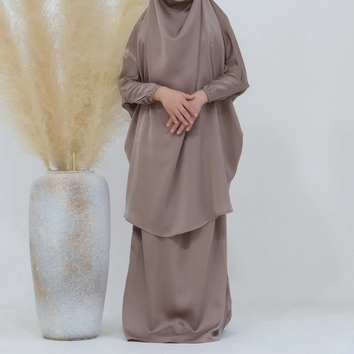 Eid Muslim Long Khimar Dress Kids Girls Abaya Long Khimar Set Prayer Garment Ramadan Dresses 2 Piece Jubha Robe Caftan Jilbab