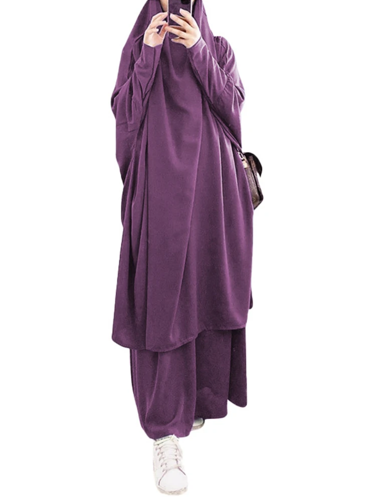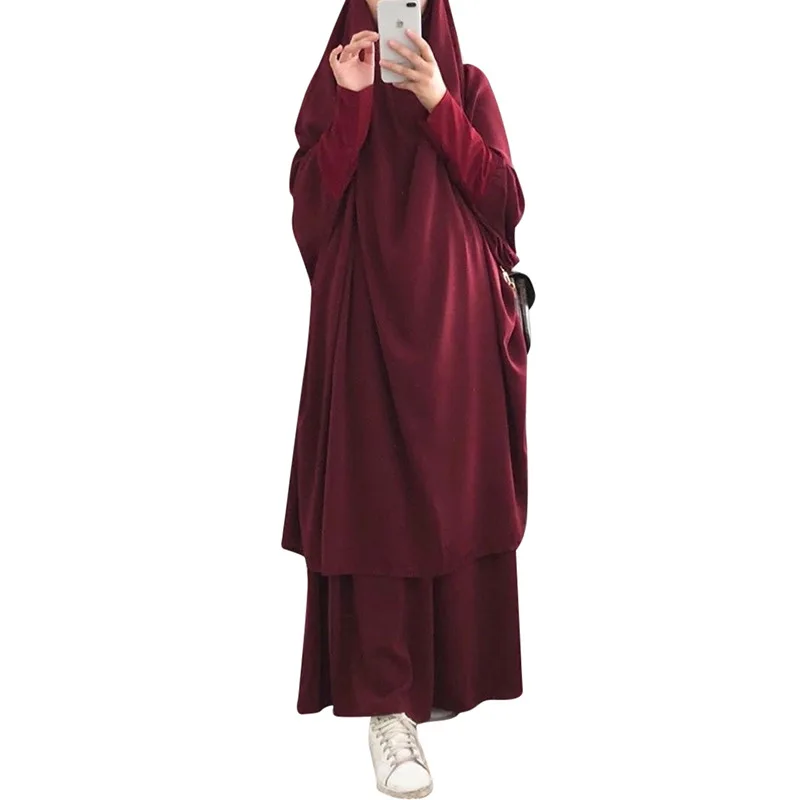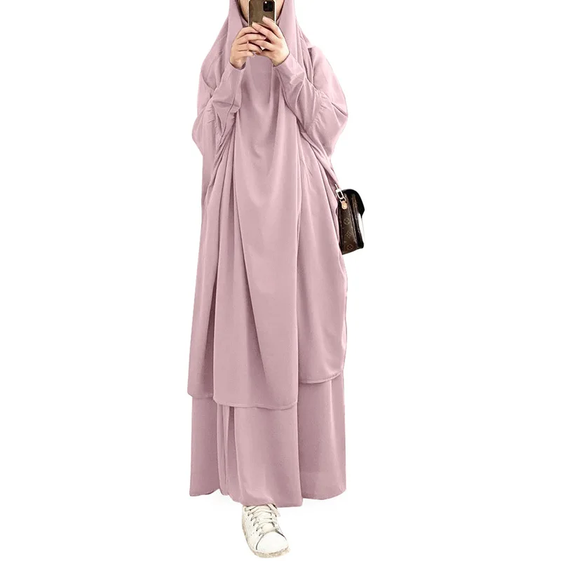 Eid Women Long Khimar 2 Piece Set Prayer Garment Djellaba Abaya Muslim Ramadan Gown Dubai Arab Islamic Niqab Burka Jubah Jilbab