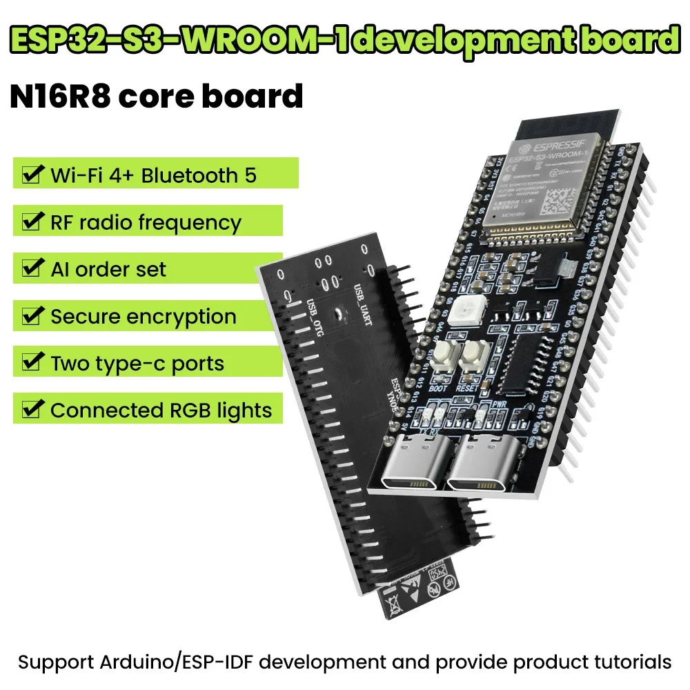 ESP32-S3-DevKitC-1N16R8 Development Board With Type-C USB 8MB PSRAM 44Pin CORE Board CH340 30+ GPIO For Arduino IDE Programming