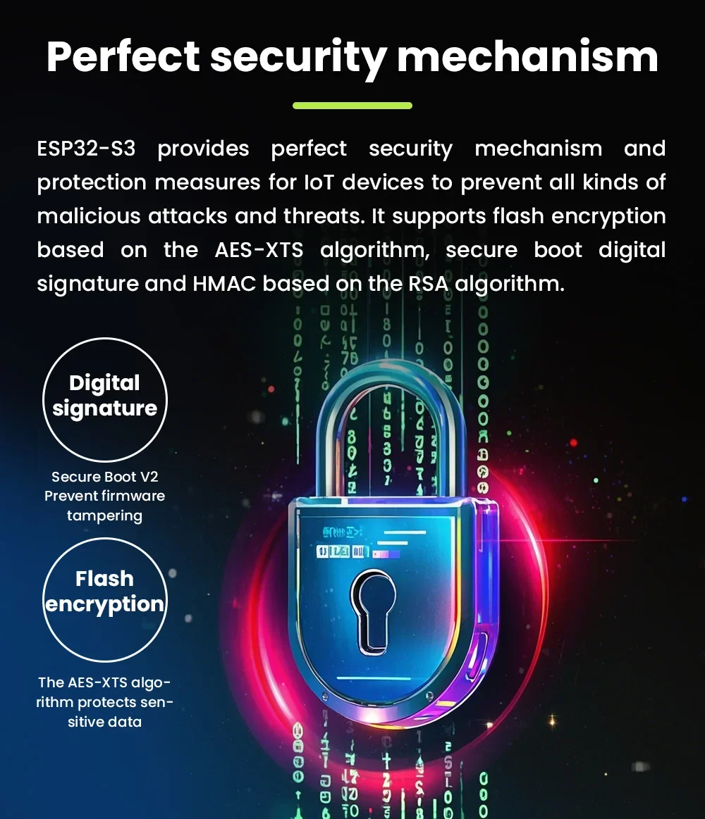 Supports Secure Boot and Flash Encryption for enhanced security.
