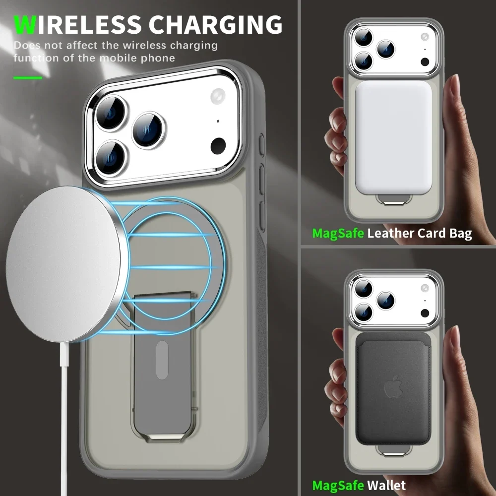 Folding Stand Holder Magnetic Matte Case For iPhone 17 16 Pro Max 15 14 Plus 13 12 For Magsafe Wireless Charge Shockproof Cover