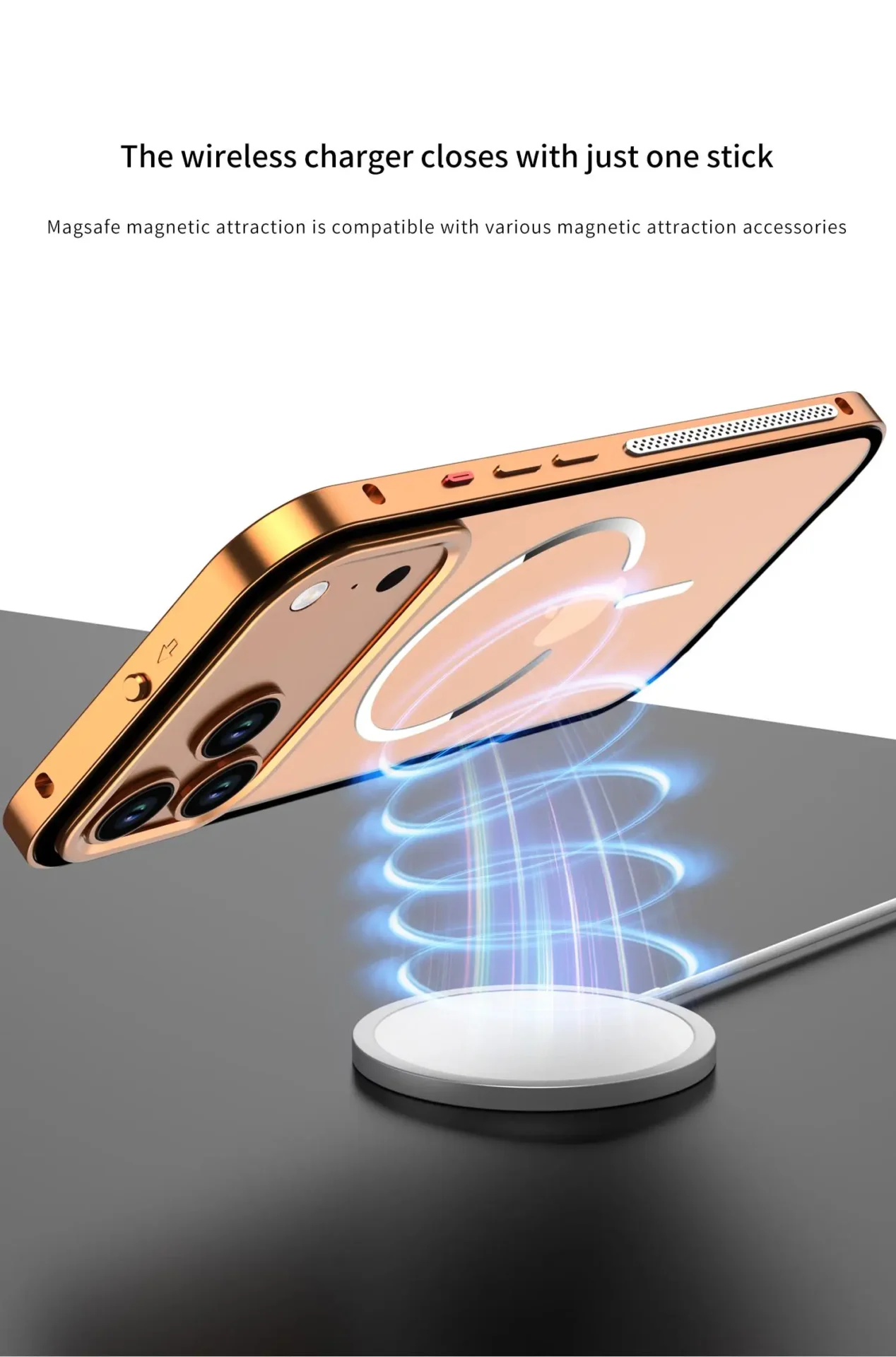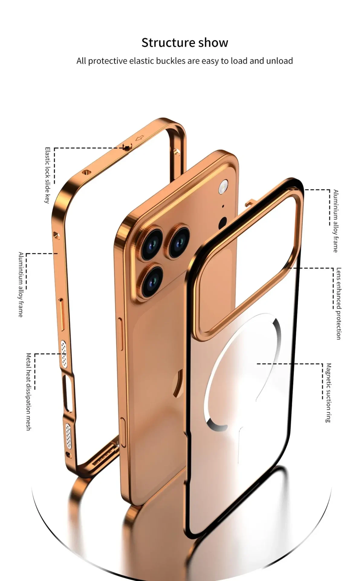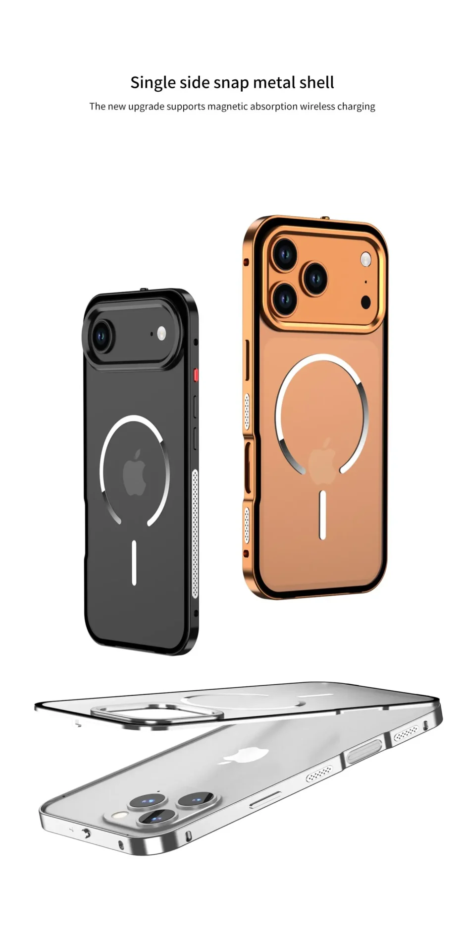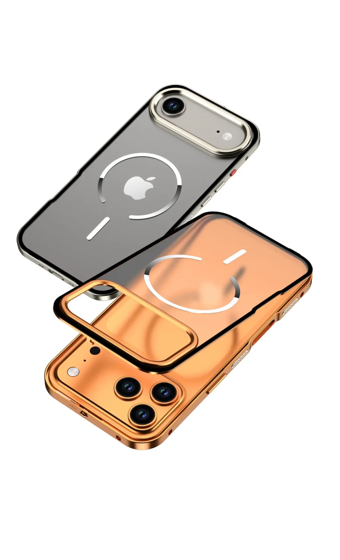 أنت تشاهد الآن:For iPhone 17Pro 17ProMax 17Air Frosted Phone Case Metal Frame Removable For Magsafe Buckle Aluminum Alloy Lens Matte Back Cover