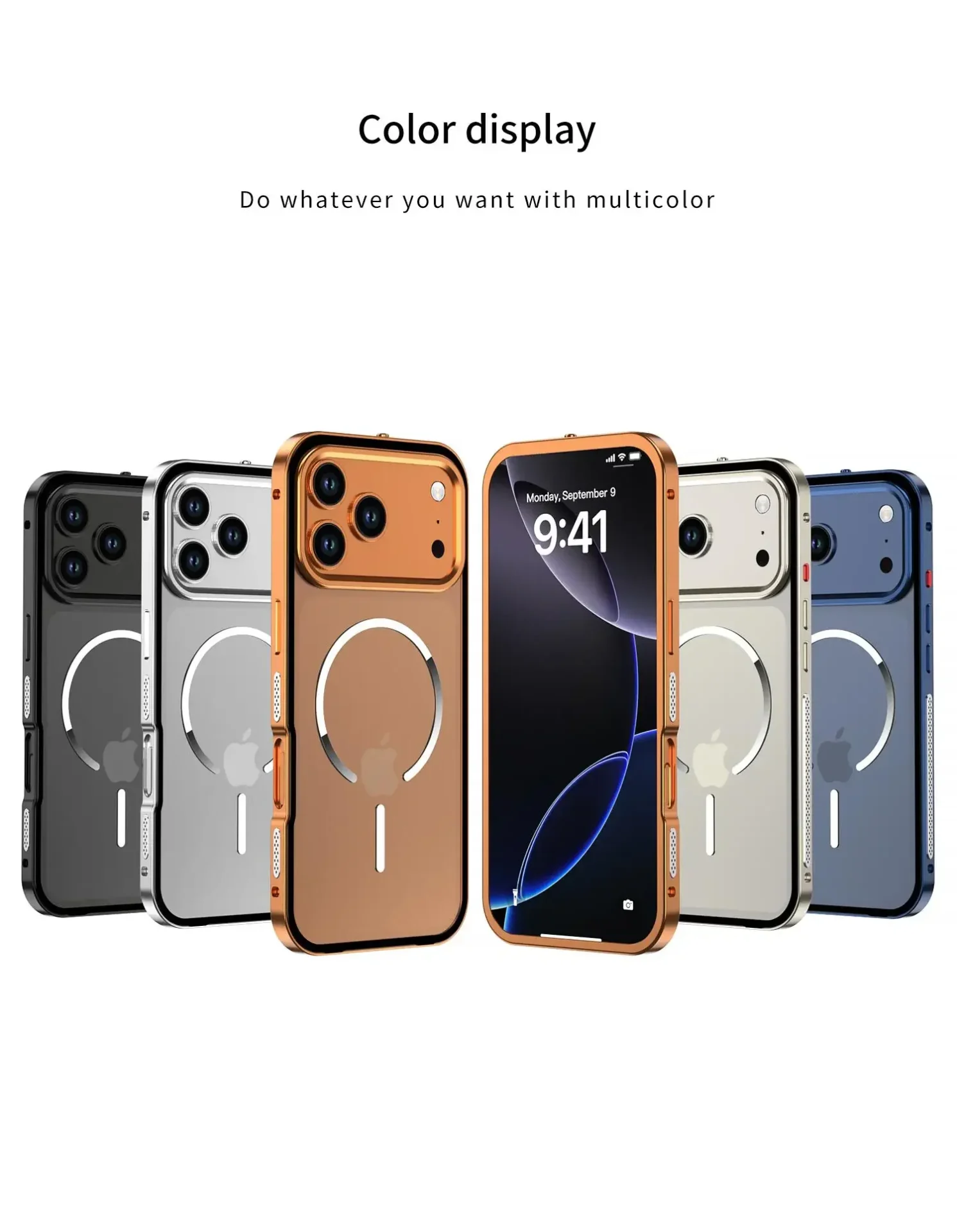For iPhone 17Pro 17ProMax 17Air Frosted Phone Case Metal Frame Removable For Magsafe Buckle Aluminum Alloy Lens Matte Back Cover