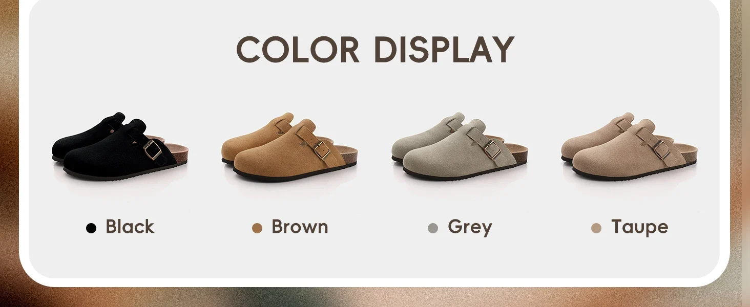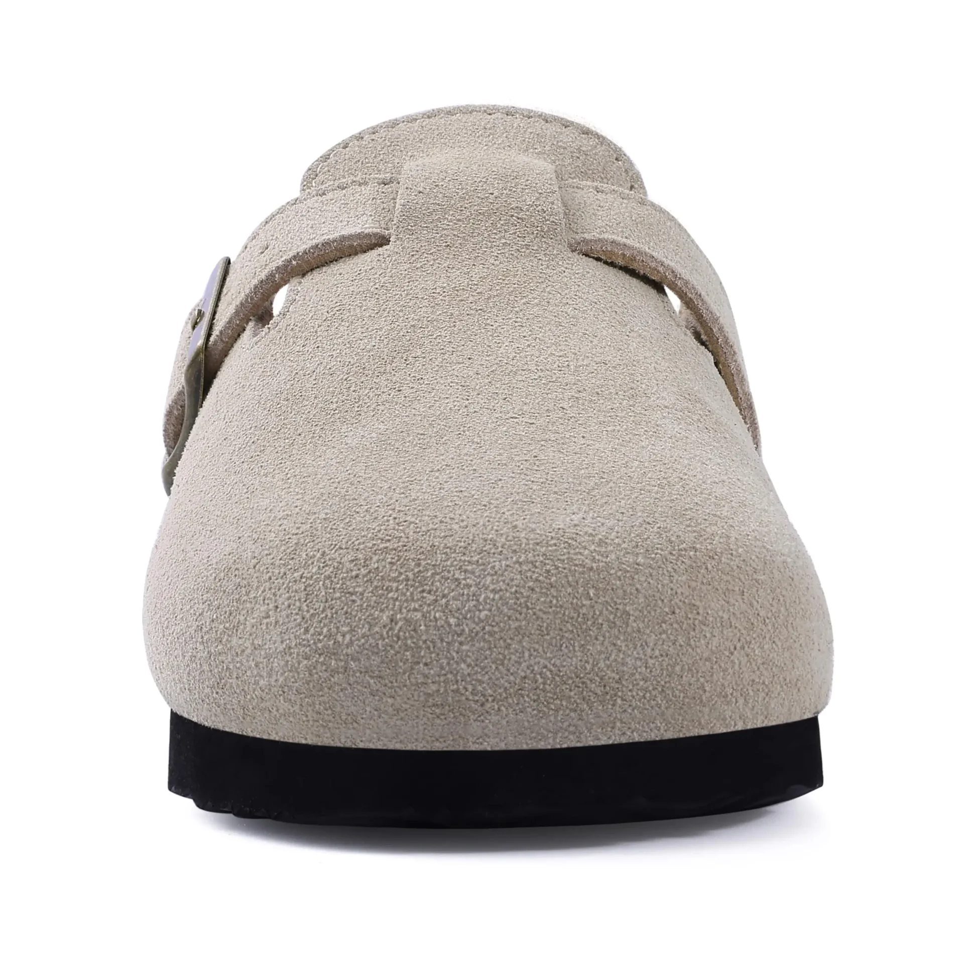 Classic Leather Clogs: The upper and insole are made of genuine suede, providing a soft and cozy touch for ultimate comfort. The worn buckle features a complemented by vintage tones, classic clogs for men and women in a fashionable closet. Slip them on and you’re off!