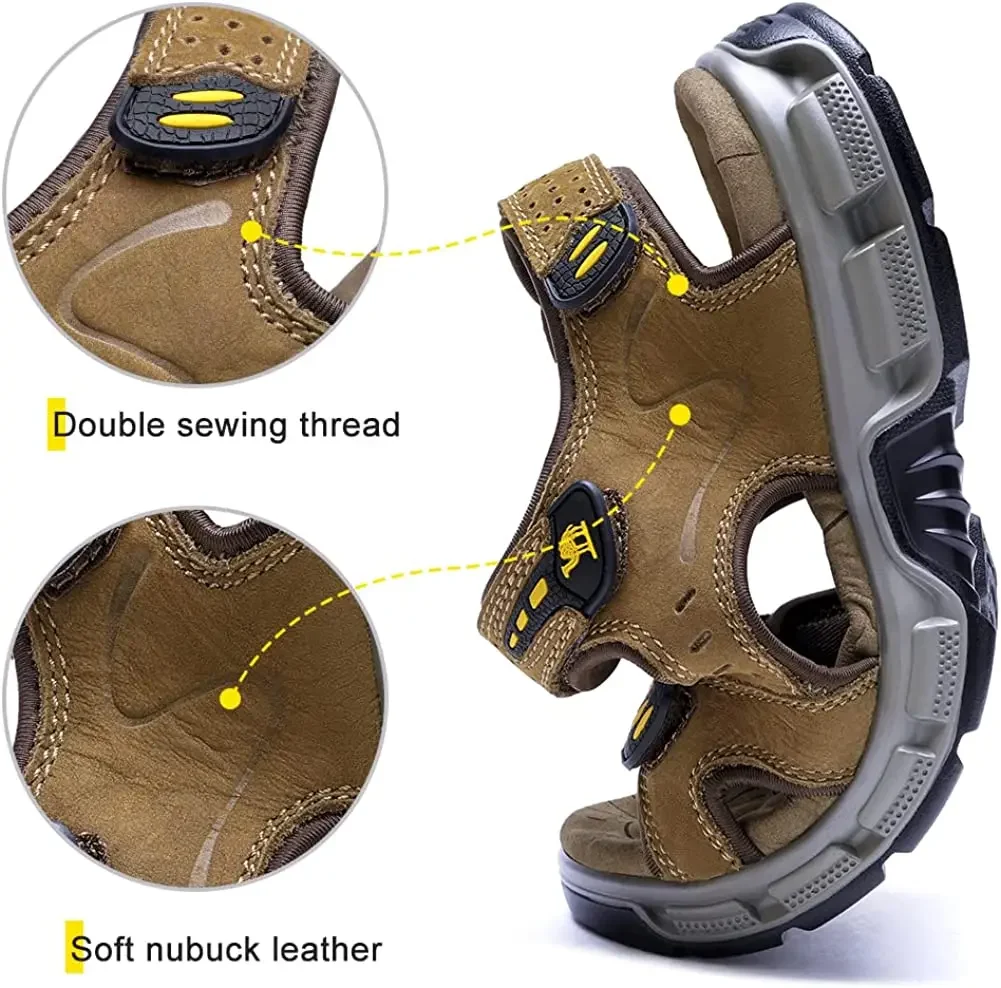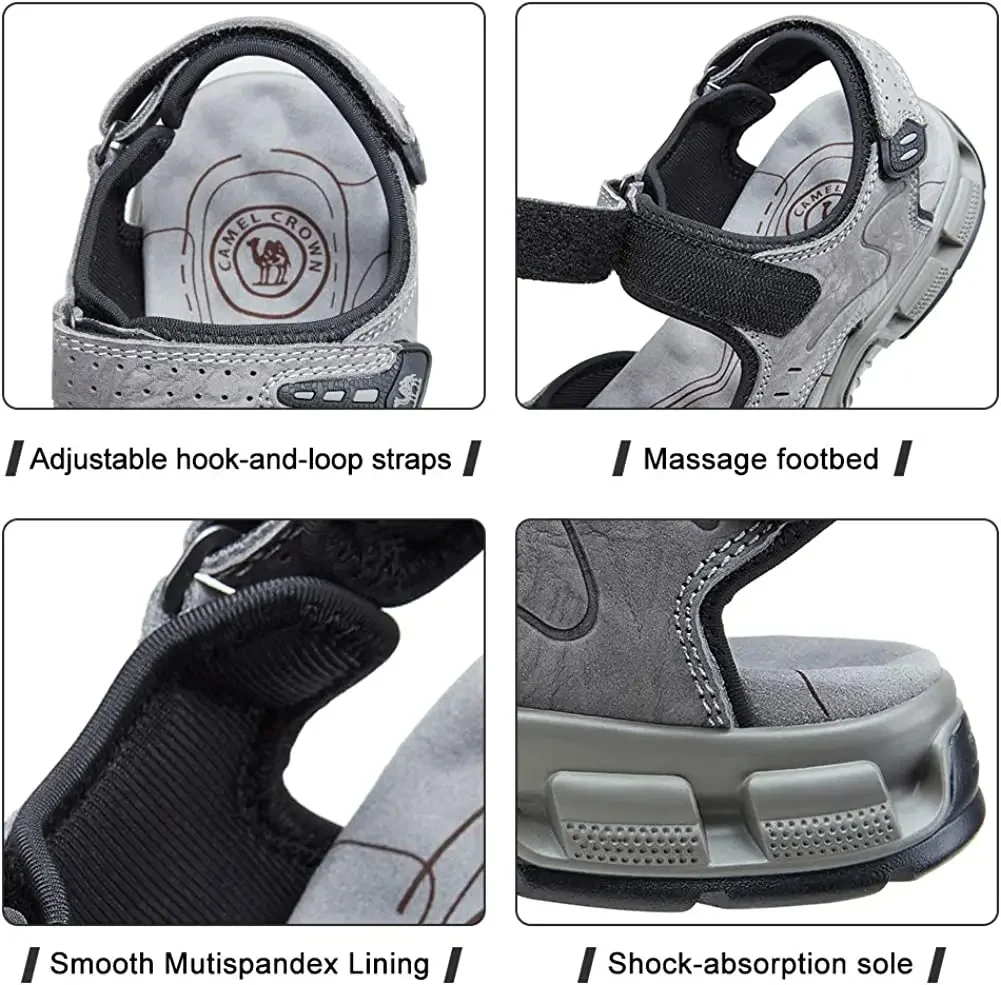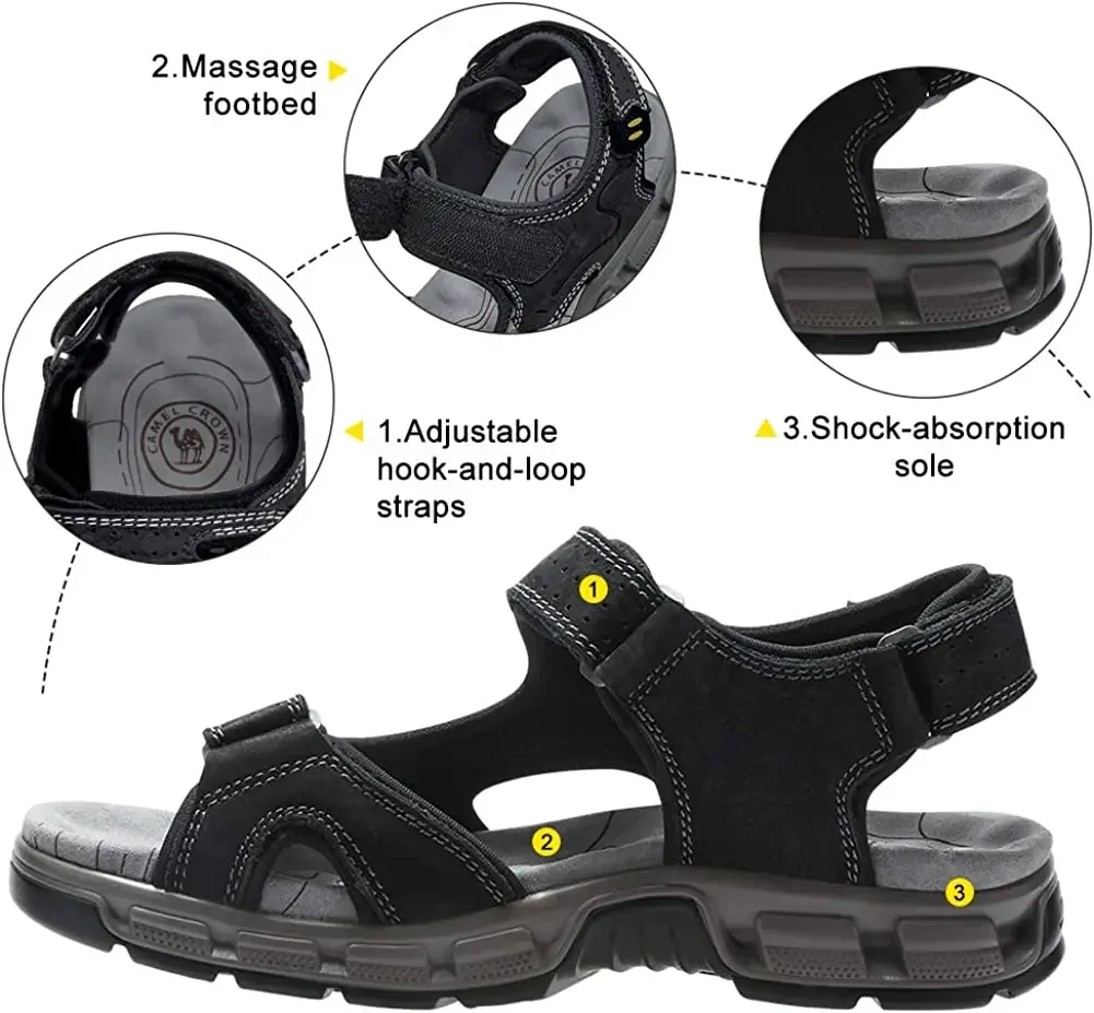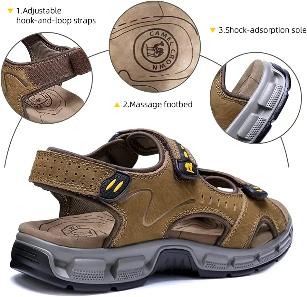 GOLDEN CAMEL Men’s Summer Sandals Leather Open Toe Hiking Sandal Walking Beach Shoes for Men Water Athletic Premium Waterproof