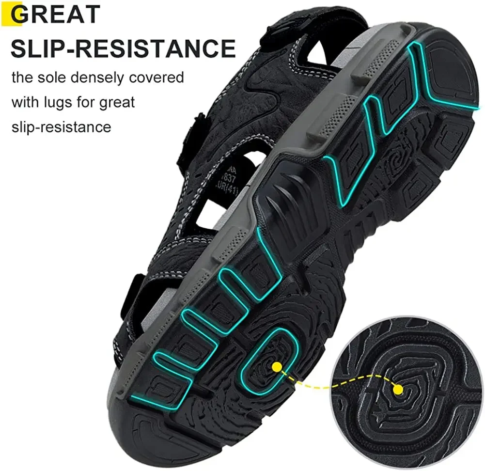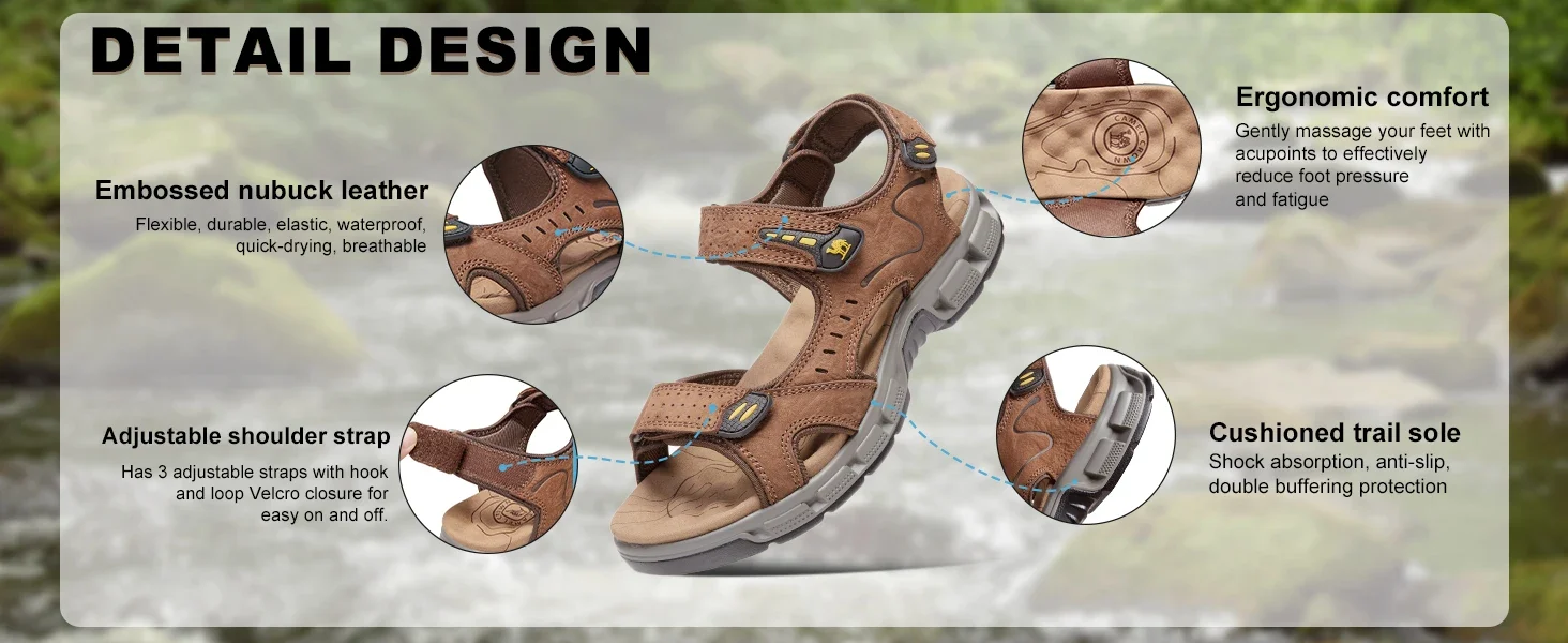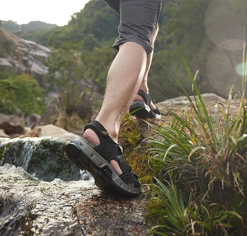 GOLDEN CAMEL Men’s Summer Sandals Leather Open Toe Hiking Sandal Walking Beach Shoes for Men Water Athletic Premium Waterproof