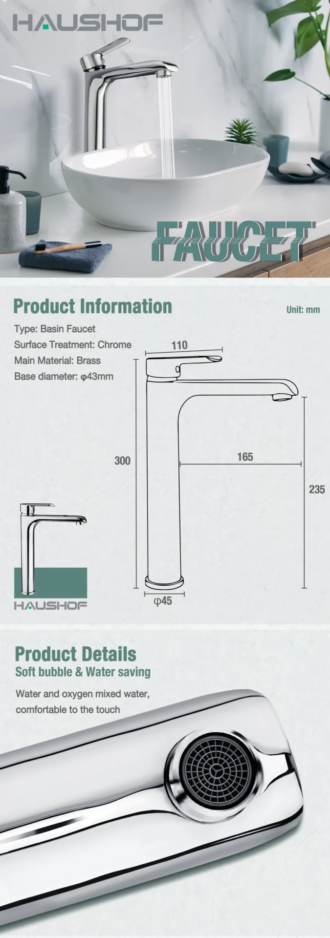 HAUSHOF Basin Faucet Chrome Kitchen Faucet Stainless Steel Kitchen Faucet Faucets Sprayer Kitchen Sink Faucet Deck Mount