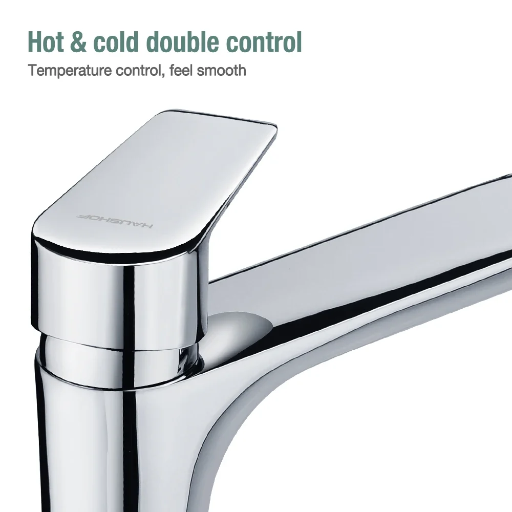 أنت تشاهد الآن:HAUSHOF Basin Faucet Chrome Kitchen Faucet Stainless Steel Kitchen Faucet Faucets Sprayer Kitchen Sink Faucet Deck Mount