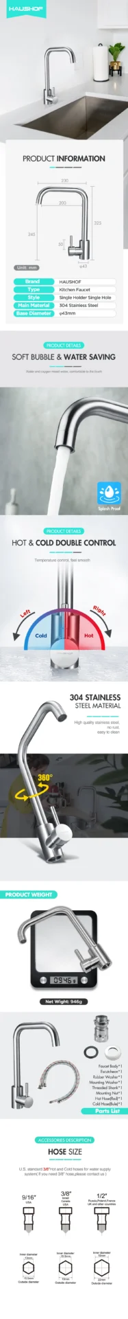 أنت تشاهد الآن:HAUSHOF Stainless Steel Kitchen Faucet Faucets Sprayer Kitchen Sink Faucet Install Sprayer Deck Mount Single Handle