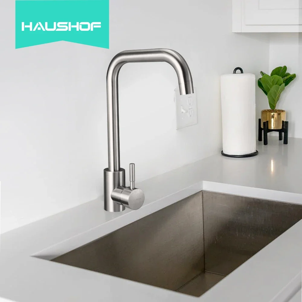 HAUSHOF Stainless Steel Kitchen Faucet Faucets Sprayer Kitchen Sink Faucet Install Sprayer Deck Mount Single Handle