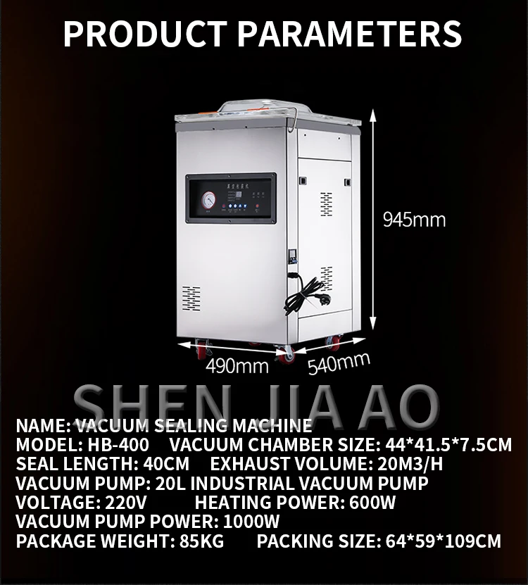 HB-400 Automatic Vacuum Sealing Machine Wet and Dry Commercial Vacuum Sealing Machine Food Packaging Machine Household