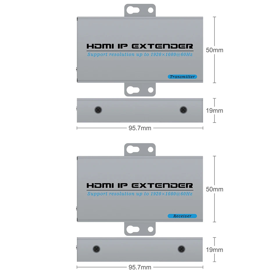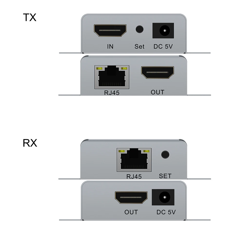 • HDMI Tramsmitter(TX) *1pcs + HDMI Receiver(RX) *1pcs + 5V Power Supply *2pcs