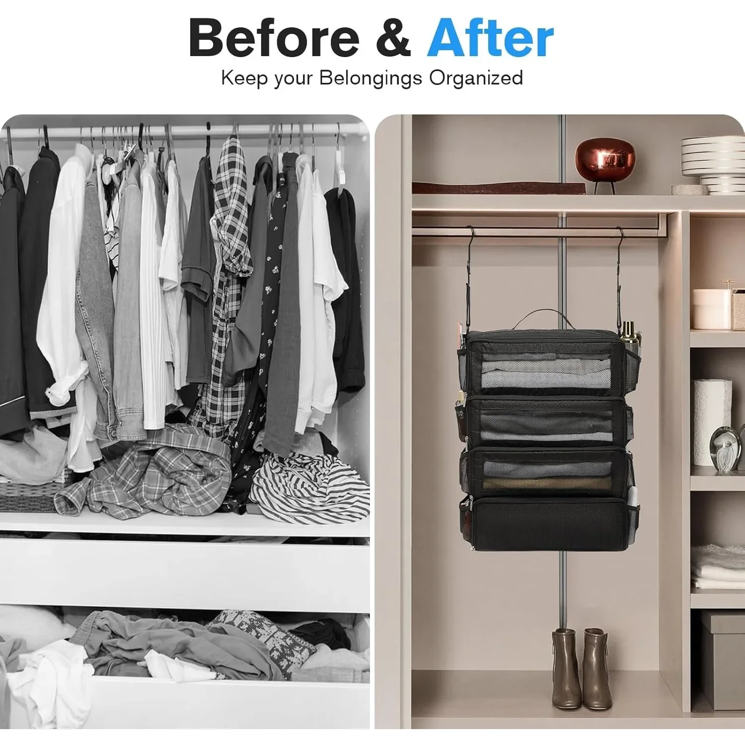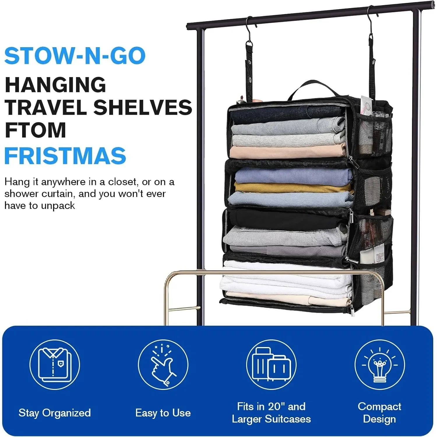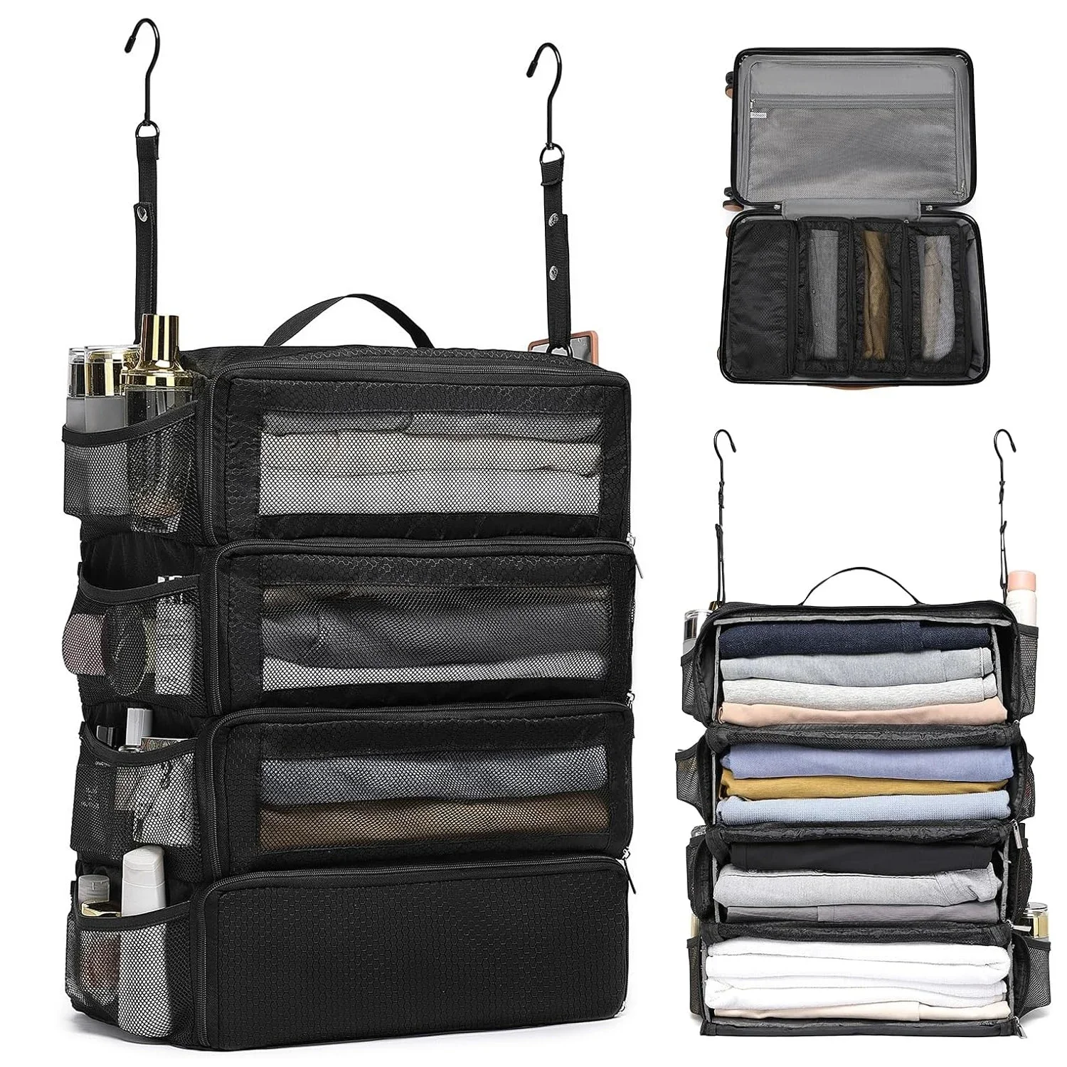 High-capacity Suitcase Organizer Travel Luggage Organizer Hanging Shelve Packing Cube Closet Collapsible Hanging Storage Bags