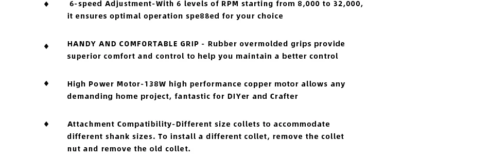 • Function: Carving/Grinding/Sharpening/Cutting/Cleaning
