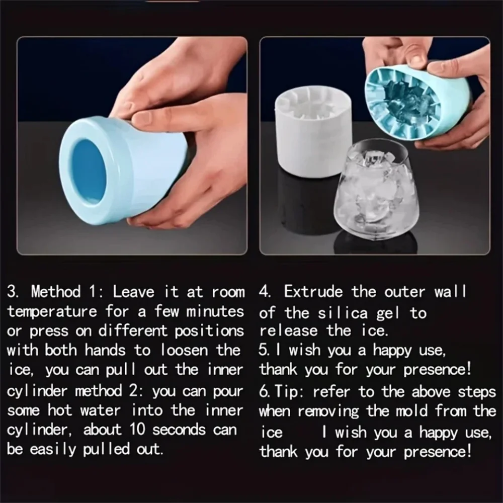 🔄 360° Easy-Pop Design: Unique cylindrical shape (6×7×7.5cm) saves refrigerator space. Allows multi-angle squeezing for complete, clean ice release every time.