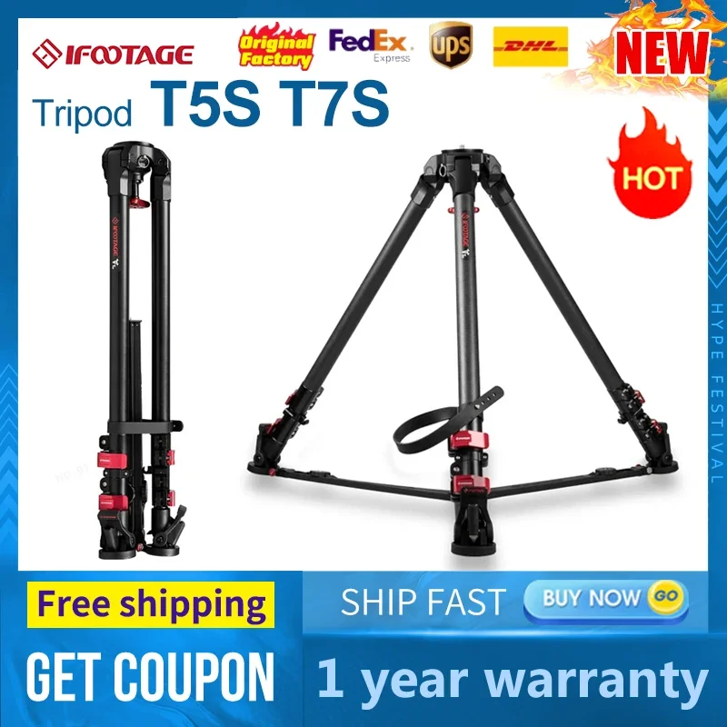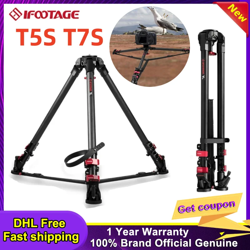 IFOOTAGE Tripod T5S T7S Professional Heavy Duty Aluminum Video Tripod for DSLR Camcorder Ajustable Stand Max Loading 88lbs