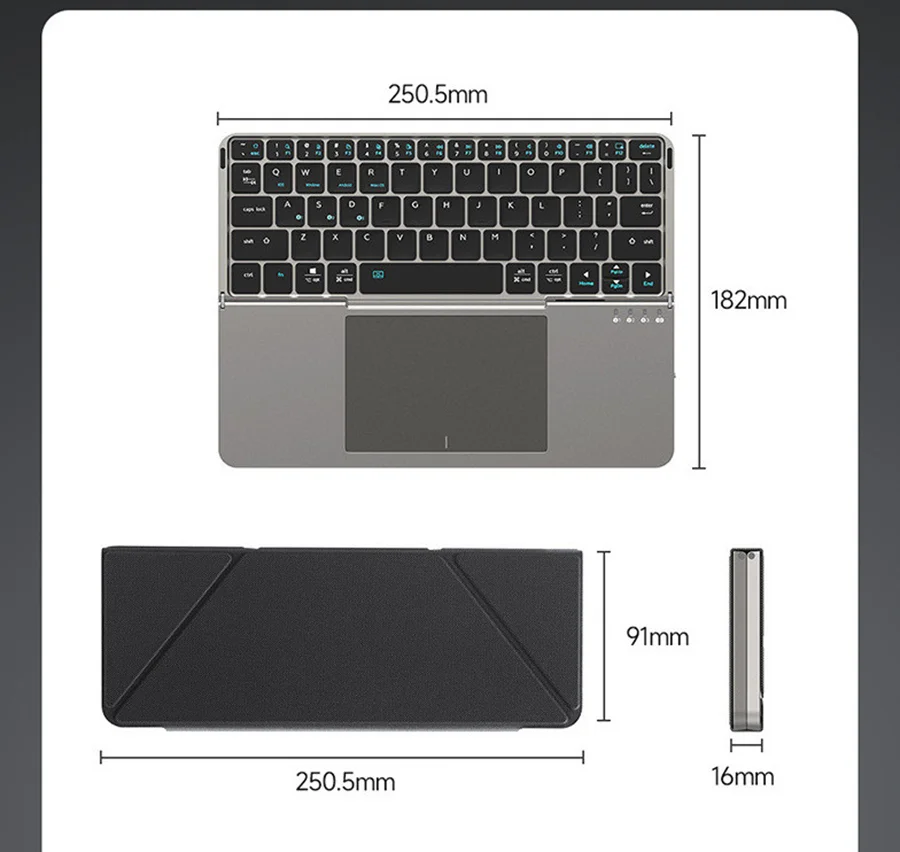 Foldable Keyboard with Touchpad: The foldable Bluetooth keyboard with touchpad features an optimized layout that allows you to adapt perfectly to your work, as well as 13 multimedia keys for quick access to a variety of functions