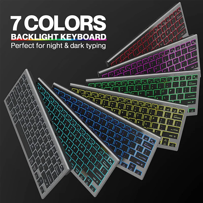 JOMAA Colors Backlit 2.4G Wireless Keyboard and Mouse Combo Rechargeable Bluetooth Keyboard for Windows Laptop
