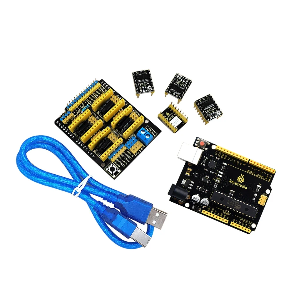 أنت تشاهد الآن:Keyestudio CNC kit for arduino CNC V3 Shield +V4.0 Board(Chip is CP2102)+ 4pcs DRV8825 driver /GRBL compatible