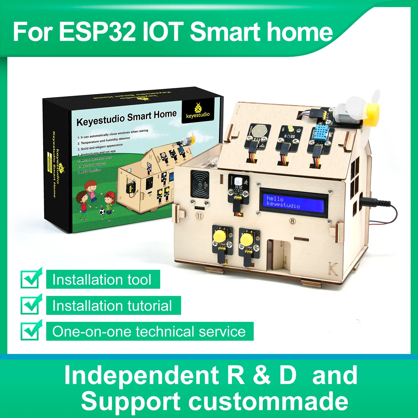 Multi functional:Smart home includes functions such as PIR Motion Sensor/Dangerous Gas Alarm/LED module/Temperature and Humidity Sensor/Morse Code .All kinds of electrical equipment can be controlled by mobile phone, control lights, fans, air conditioning and so on.