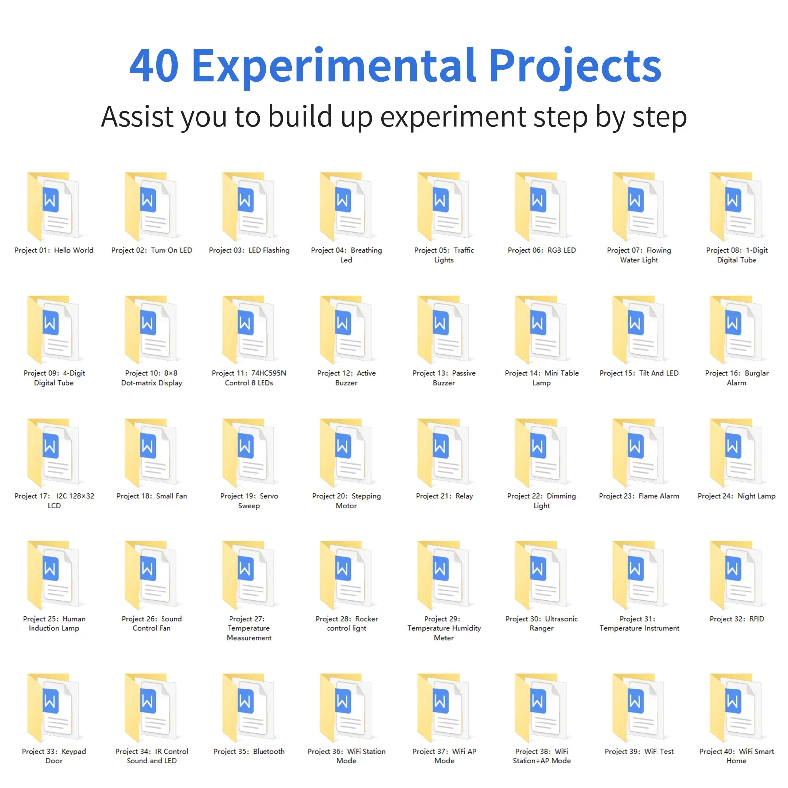 As long as you’re passionate about science and dare to explore new things, this kit is surely the best choice for you. The Keyestudio ESP32 Learning Kit Ultimate Edition mainly contains some common electronic components/sensors/modules, a ESP32 mainboard and bread wires are also included.