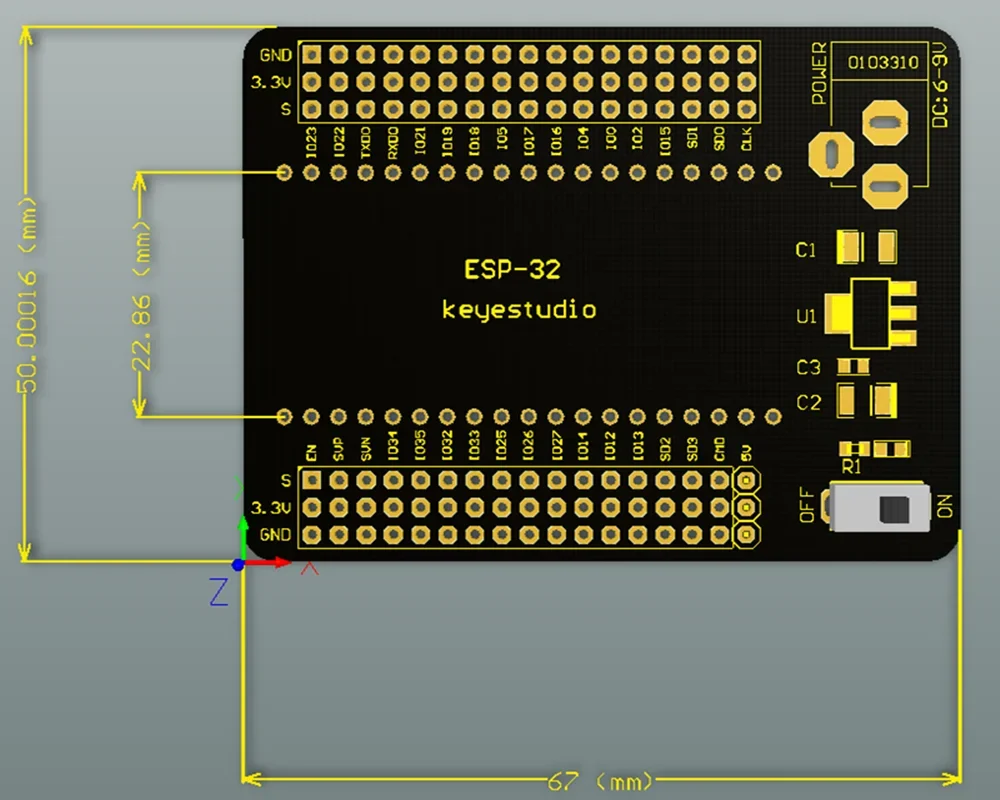 At the same time, in order to supply the power to keyestudio ESP32 Core board, the ESP32-IO shield has also designed with the power supply circuit.