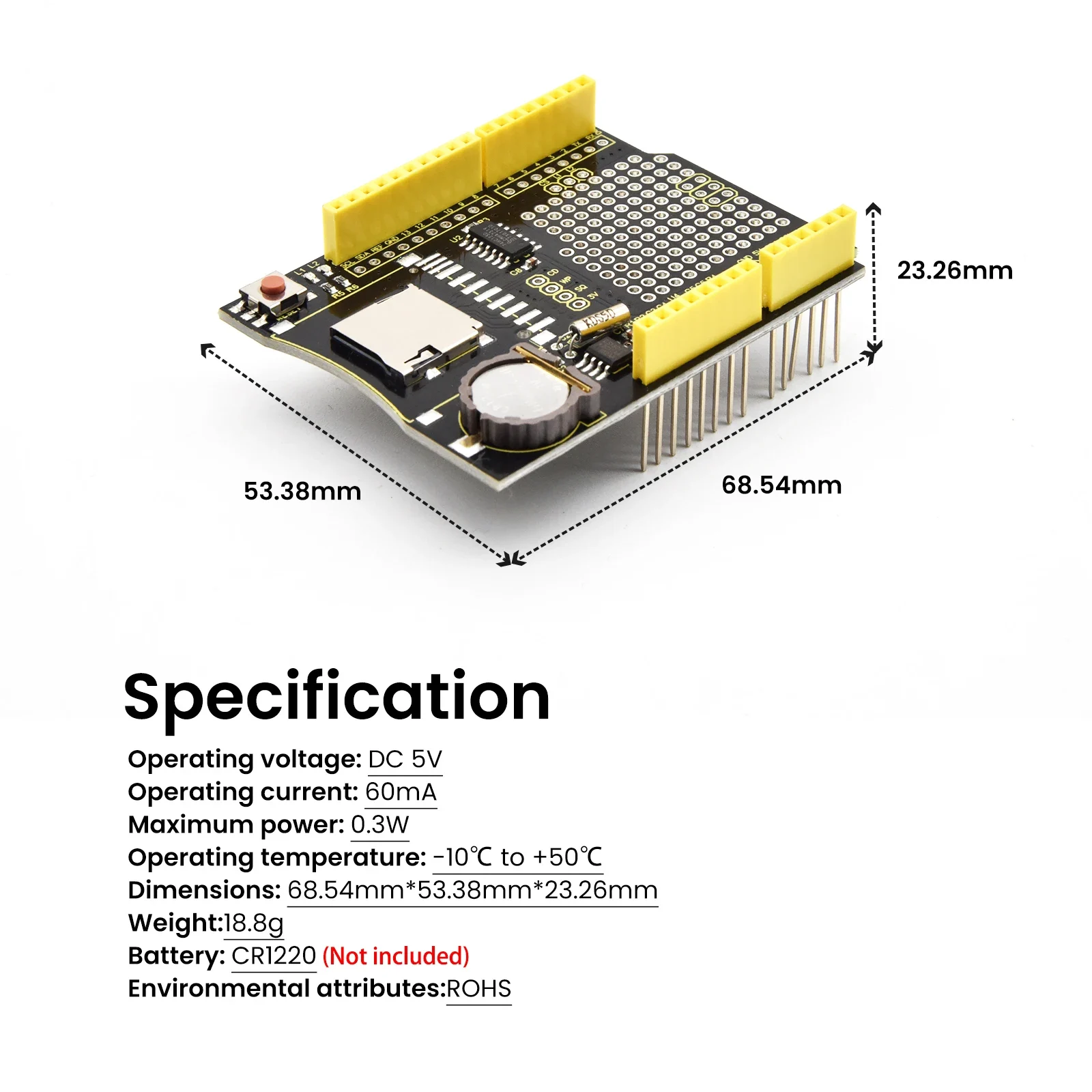 Keyestudio Expansion Board For Arduino UNO with TF Card Data Recording Slot (Without Battery)