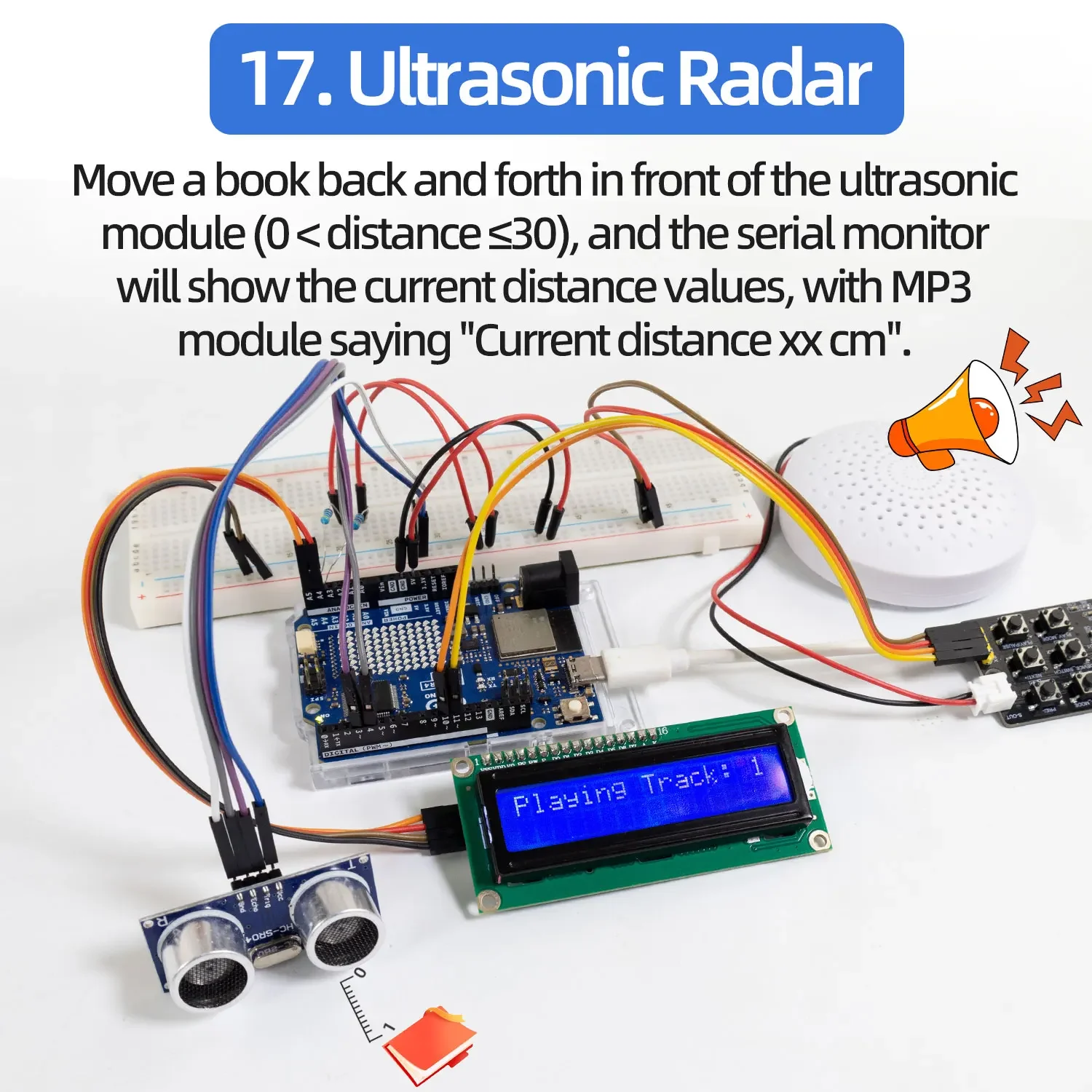 Keyestudio Arduino UNO R4 Smart Living and Learning Kit includes rich resources, including multiple electronic components and sensors, detailed project tutorials, and high quality after-sales service. Aiming at a progressive learning from basic to advanced, it is a perfect choice for students, educators and electronics enthusiasts.