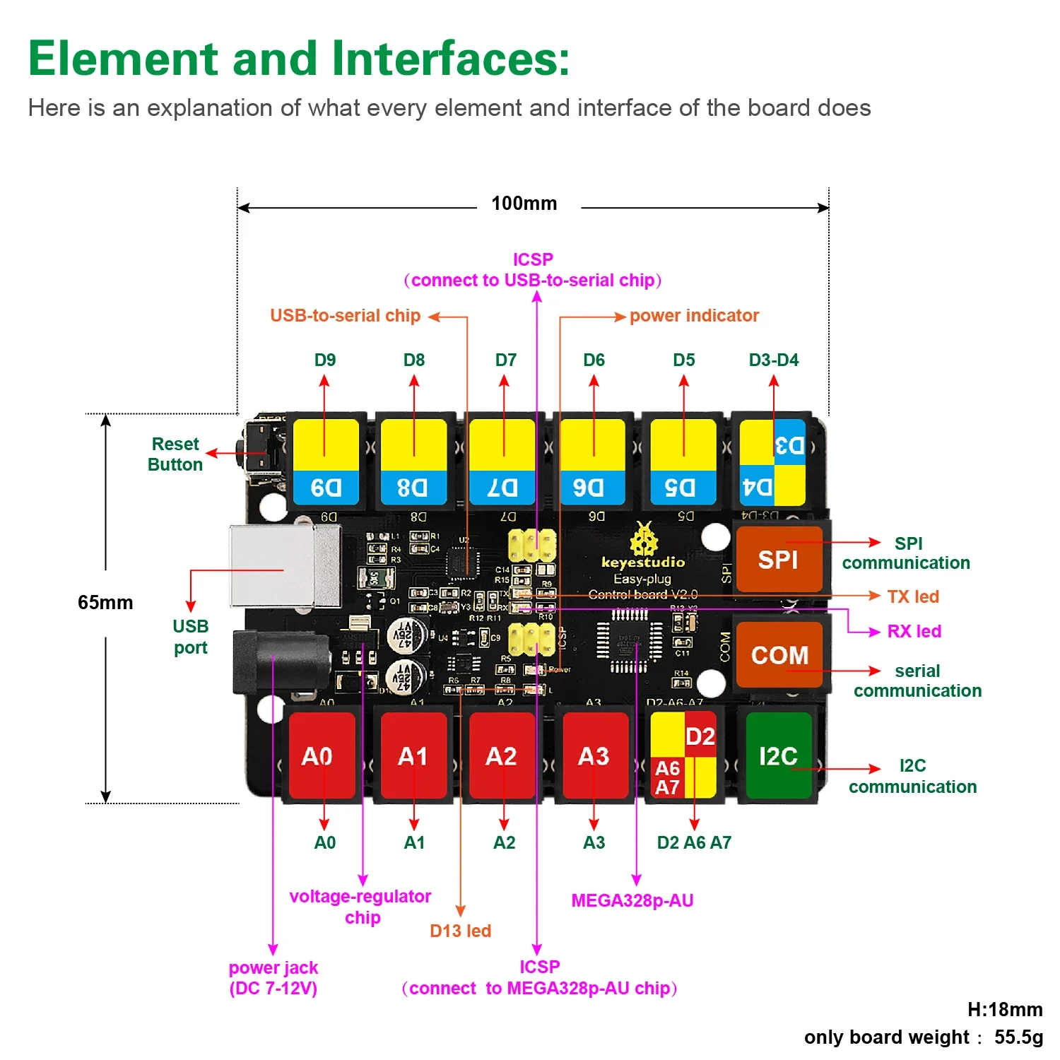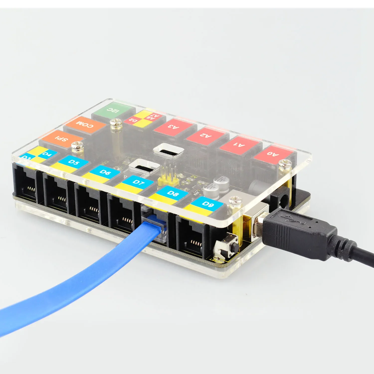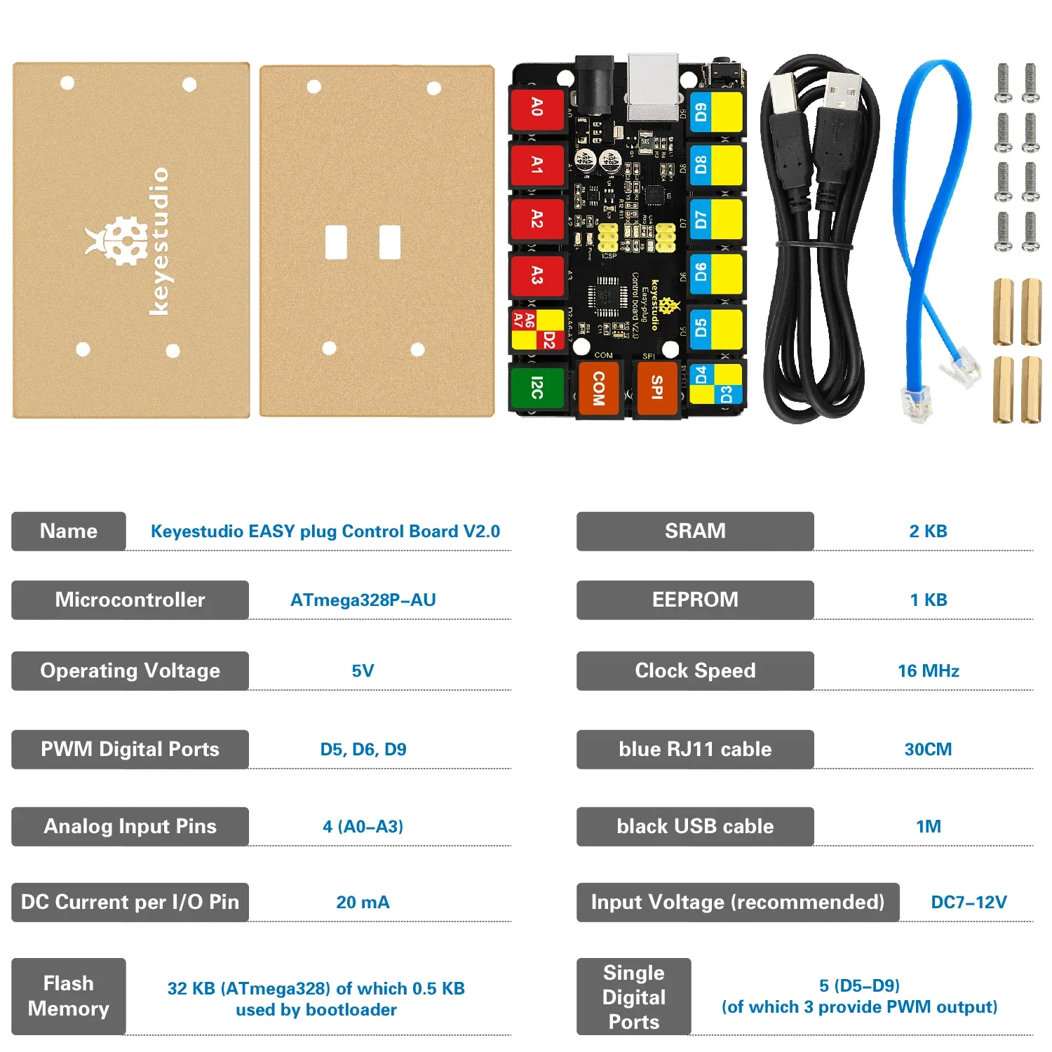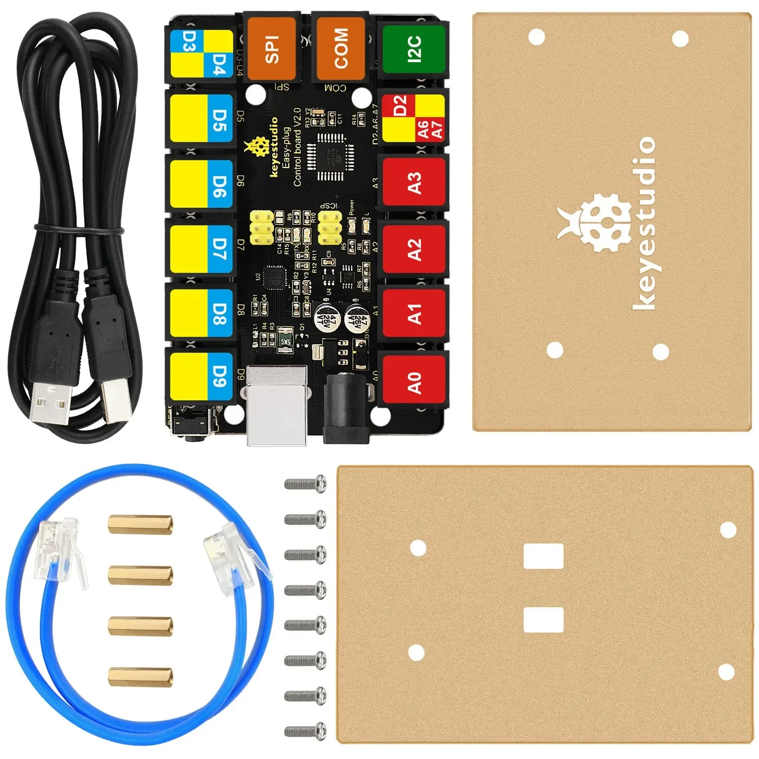 Keyestudio RJ11 EASY Plug V2.0 Control Board For Arduino Chip ATmega328AU+USB Cable+RJ11 Cable For Arduino STEM Accessories