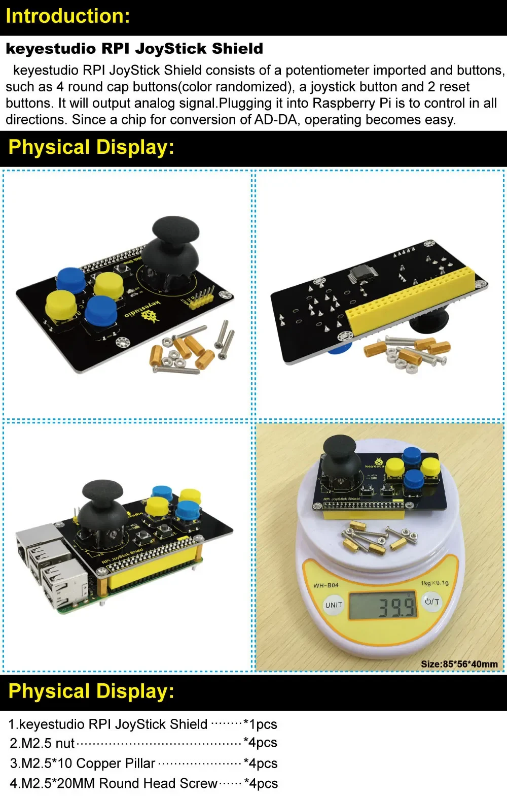 Keyestudio RPI JoyStick Shield PCF8591 for Raspberry Pi Projects /CE certification