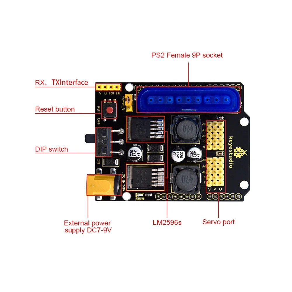 Keyestudio Servo Driver Expansion Board With PS2 Port For Arduino Robot Car Arduino Shield 5V Output Voltage