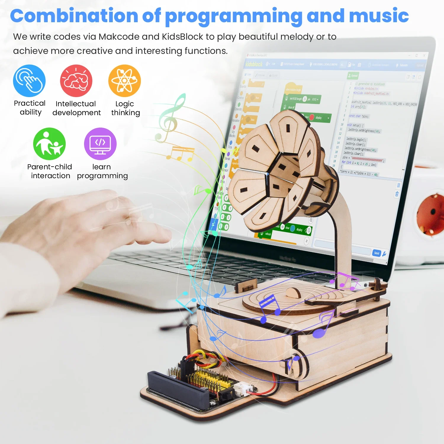 Keyestudio STEM Programming DIY Mini Light Controlled Phonograph Starter Kit For Arduino ESP32&Microbit V2 Kit Programmable Toys