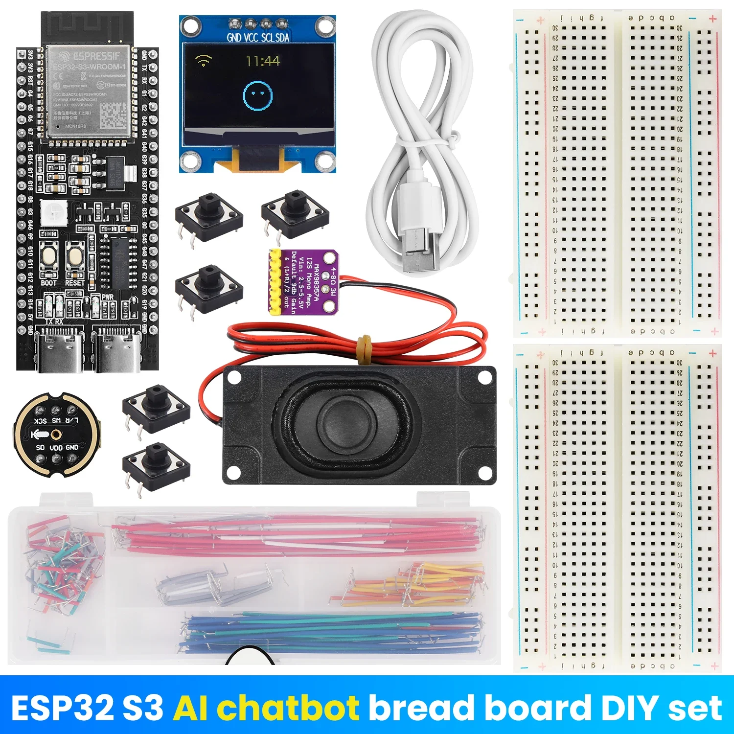 Keyestudio Xiao Zhi AI Voice Chatbot Breadboard DIY Starter Kit مع شاشة OLED 128×64 لـ Arduino ESP32-S3-DevKitC-1 Kids STEM