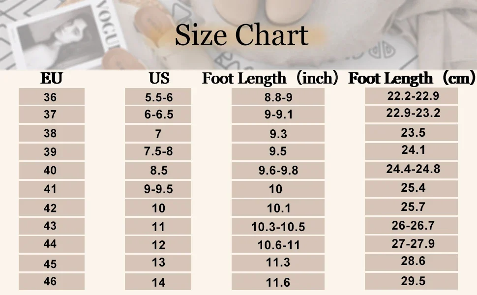 | Shoe Size | 36, 37, 38, 39, 40, 41, 42, 43, 44, 45, 46 |