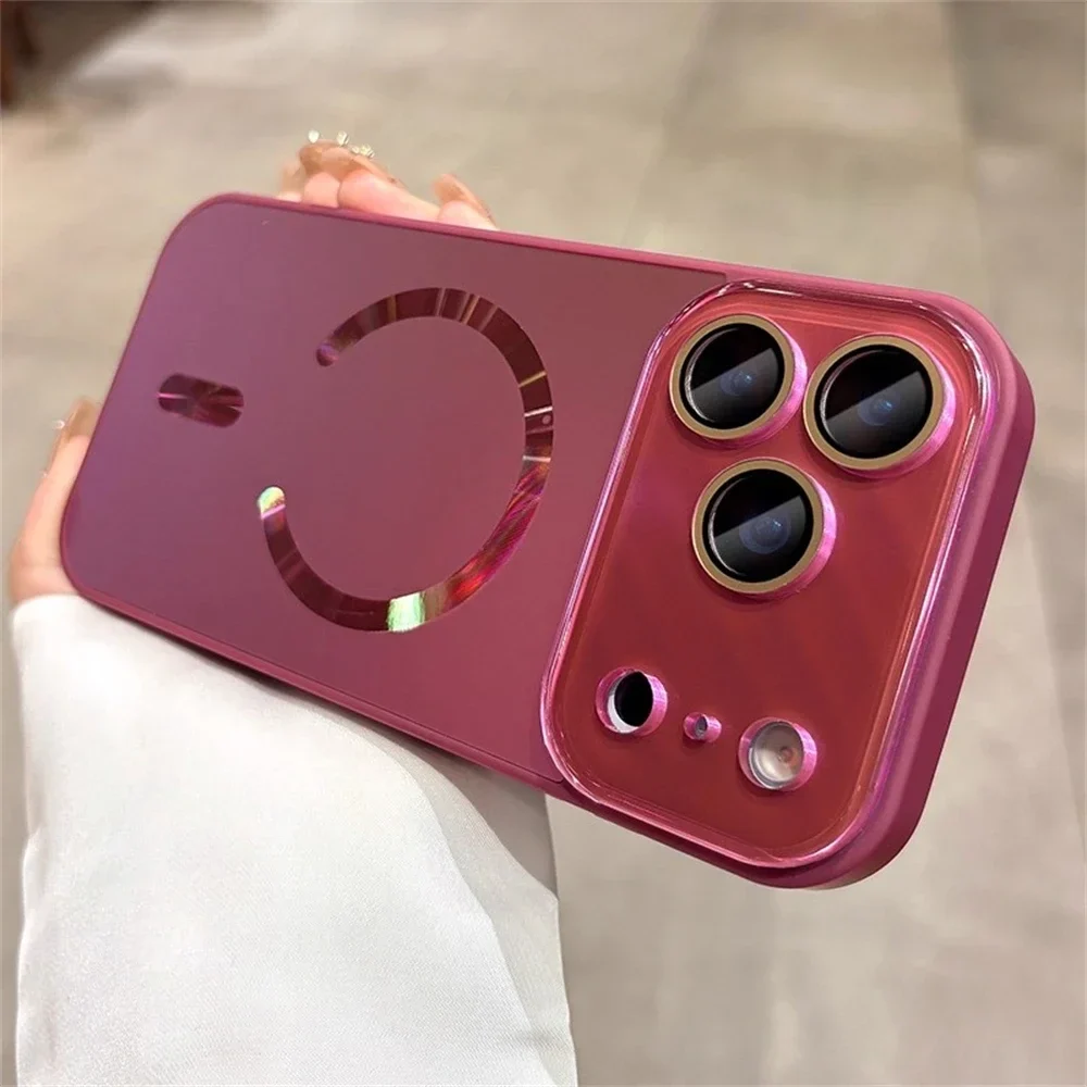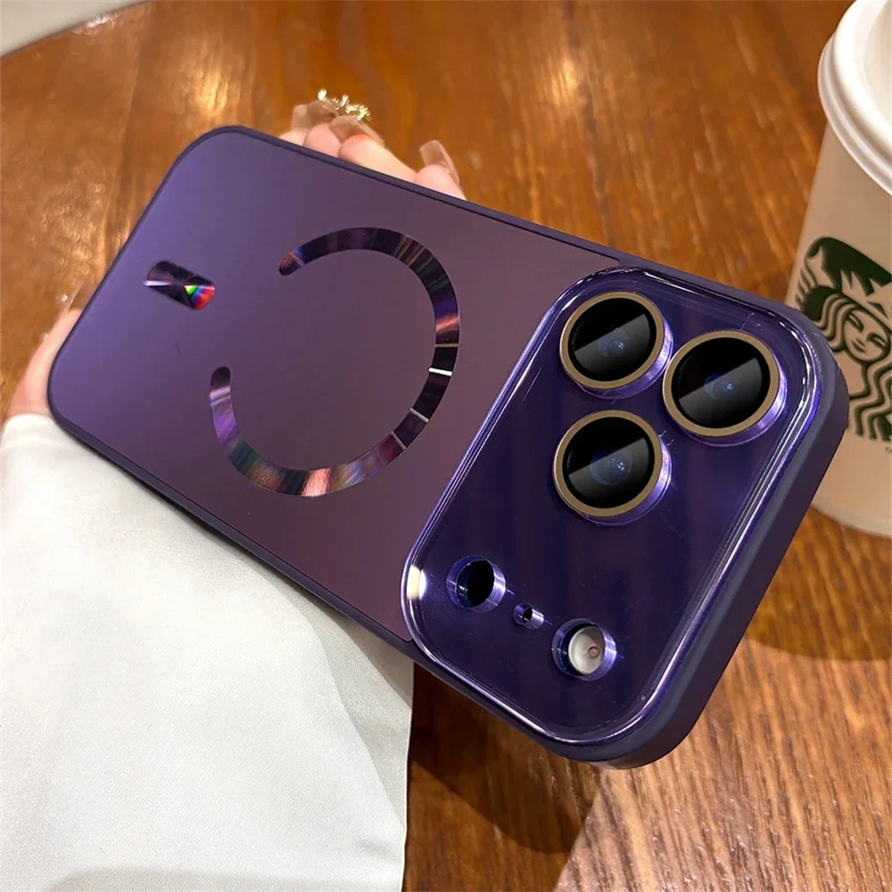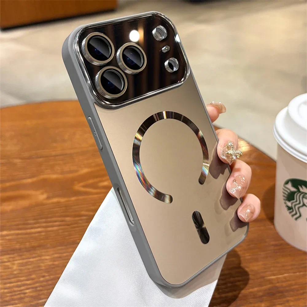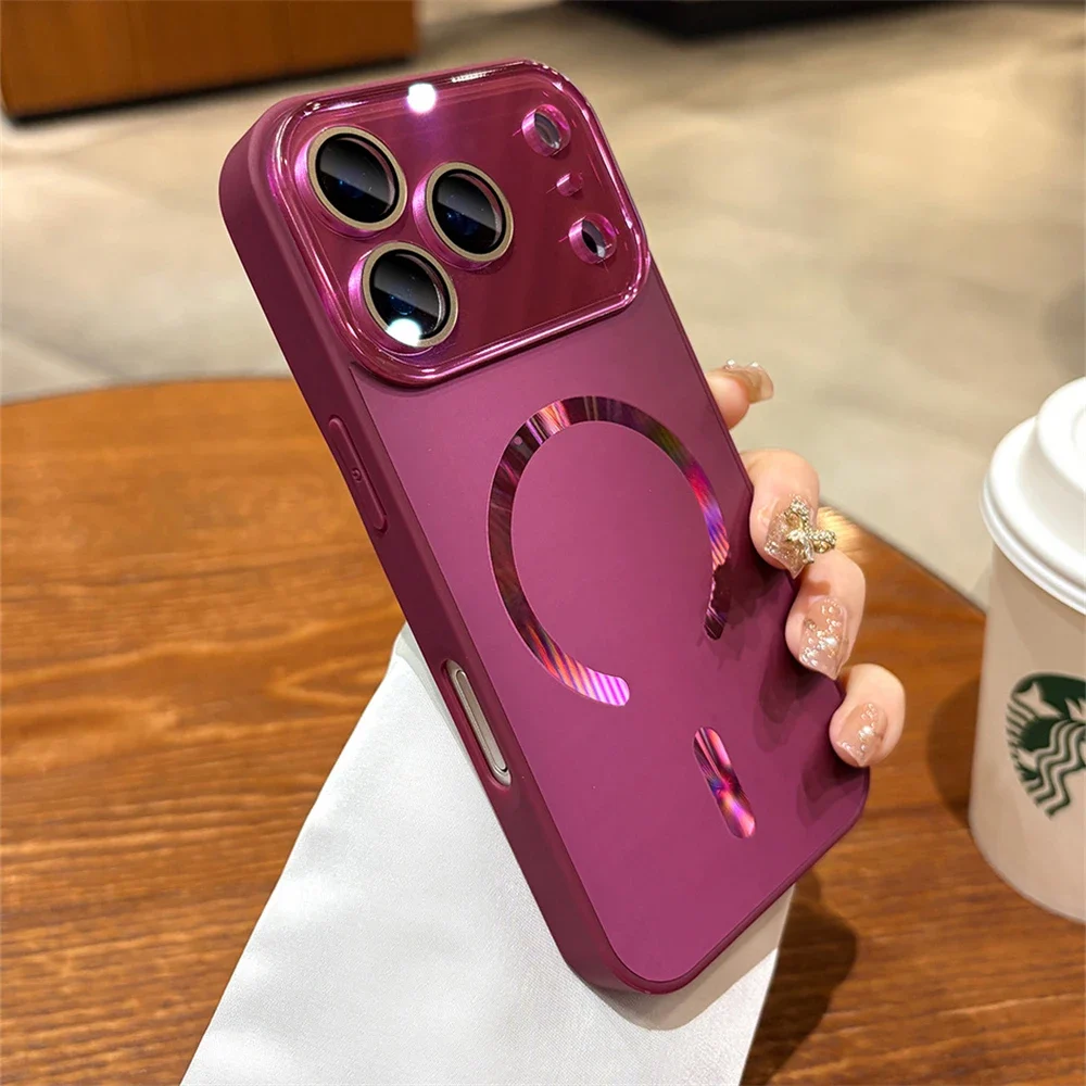 Laser Large Window Camera Matte Glass Protect For Magsafe Case For iPhone 17 16 15 14 13 Pro Max Magnetic Wireless Charge Cover